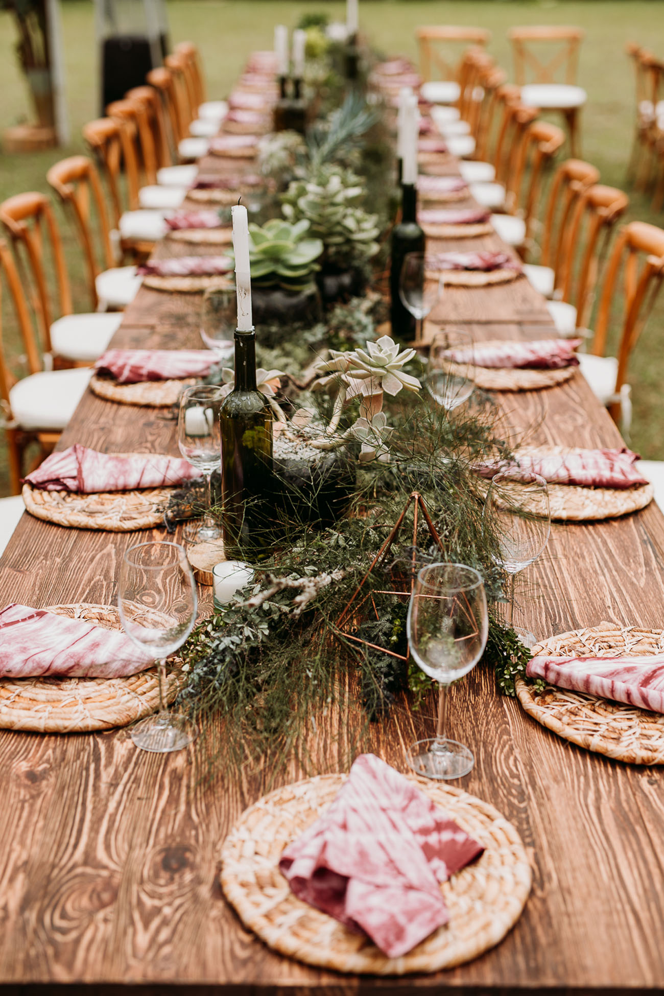 La planeación y la ejecución de esta historia es la parte más bonita de todas. Fue una unión de amor, de enquépodemosayudar, de reciprocidad. La intención era sencilla: estar en casa, rumbeando con los amigos. Alejar los protocolos, acercar los abrazos. Una fiesta campestre, muy estética, que no tuviera contradicciones de lo que ellos dos son, individual y en colectivo.