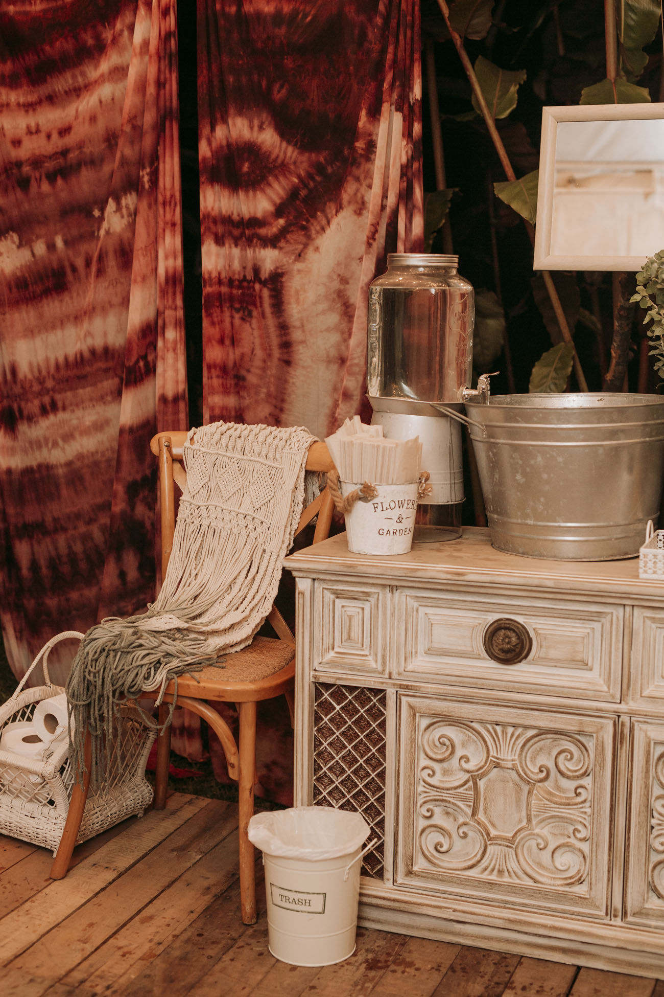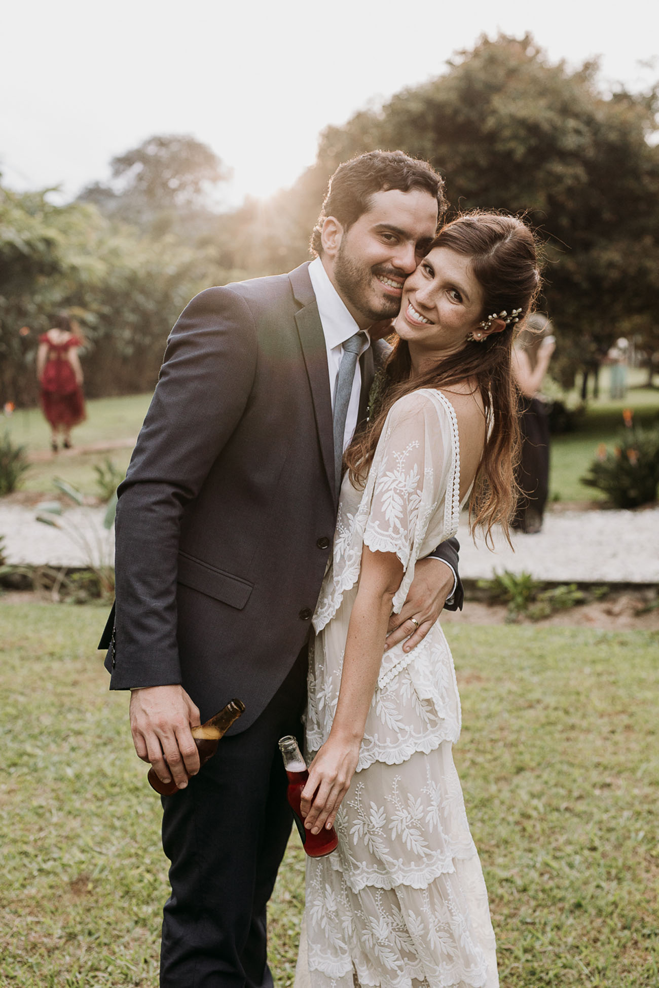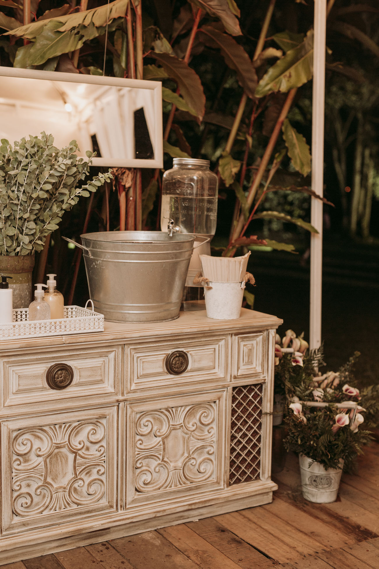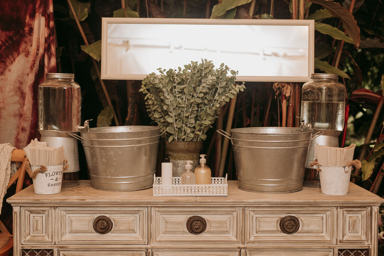 Lo primero: carpas al aire libre. Madera para la pista de baile y los baños; para el resto del piso: la manga, lo natural uniéndose a la celebración. Después, se unieron todos. La familia de su mejor amiga, le regaló todo el follaje verde para la decoración, la mamá de Juancho se encargó de los pasantes, los postres fueron de Bakeat (de una amiga de ella), la comida fueron hamburguesas Grillé (de un primo de él) y las cervezas del coctel fueron otro regalo de su hermano, que tiene una cervecería artesanal. Tuvieron un nombre especial “los contrayentes”, una etiqueta especial (que Sara diseñó), un sello especial: S&J y dos sabores especiales.