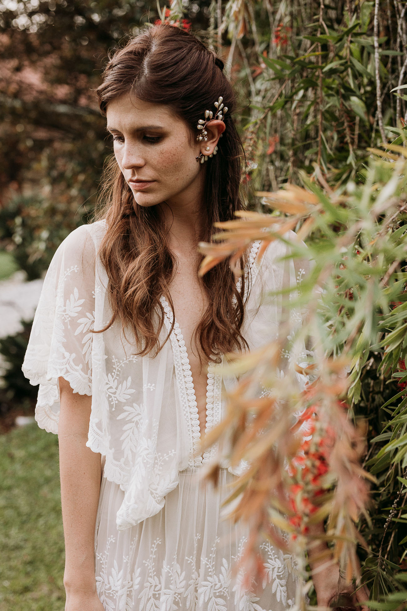 Leal a lo que es todos los días, en su cotidianidad y su tranquilidad, Sara quiso un maquillaje-no maquillaje, un peinado des estructurado con trenzas y un solo accesorio: un ear cuff de Zawadzky.