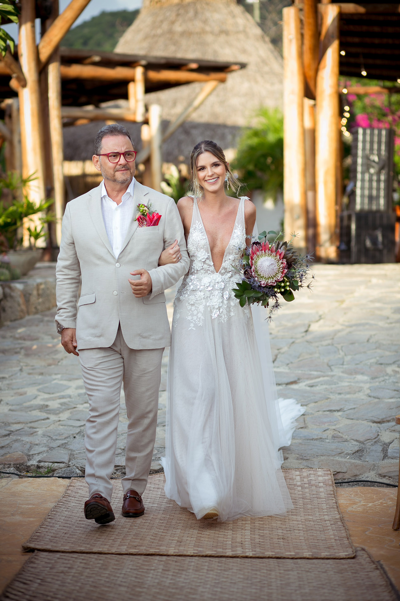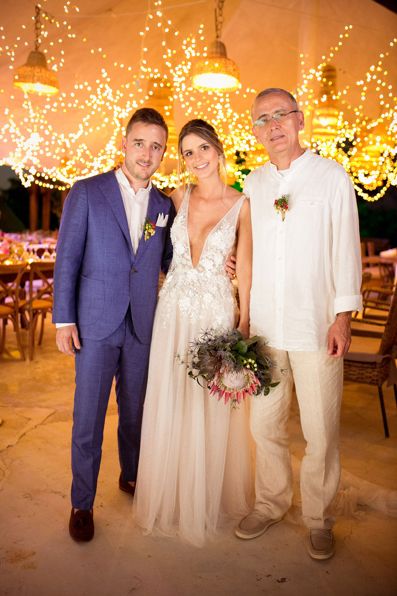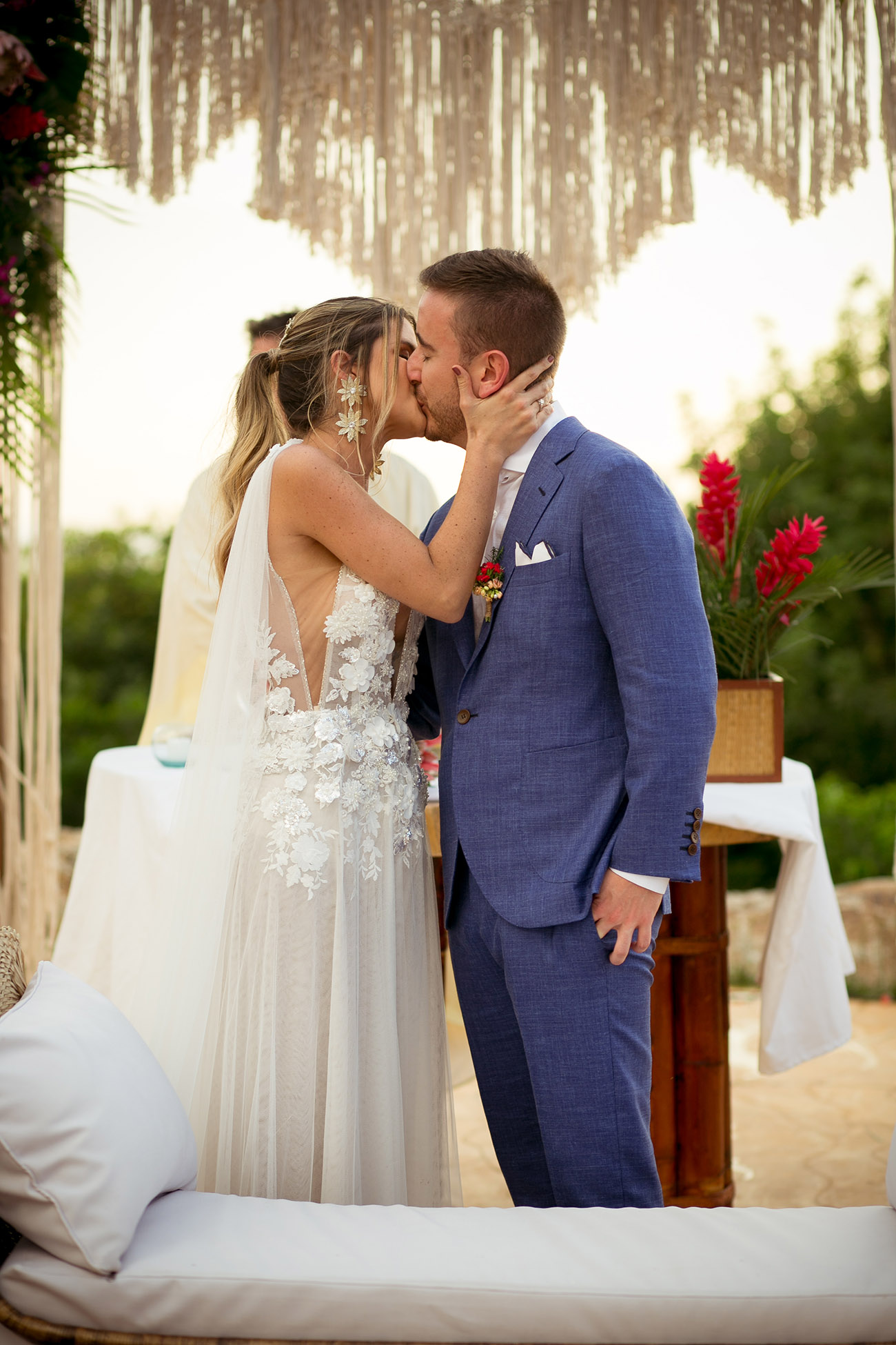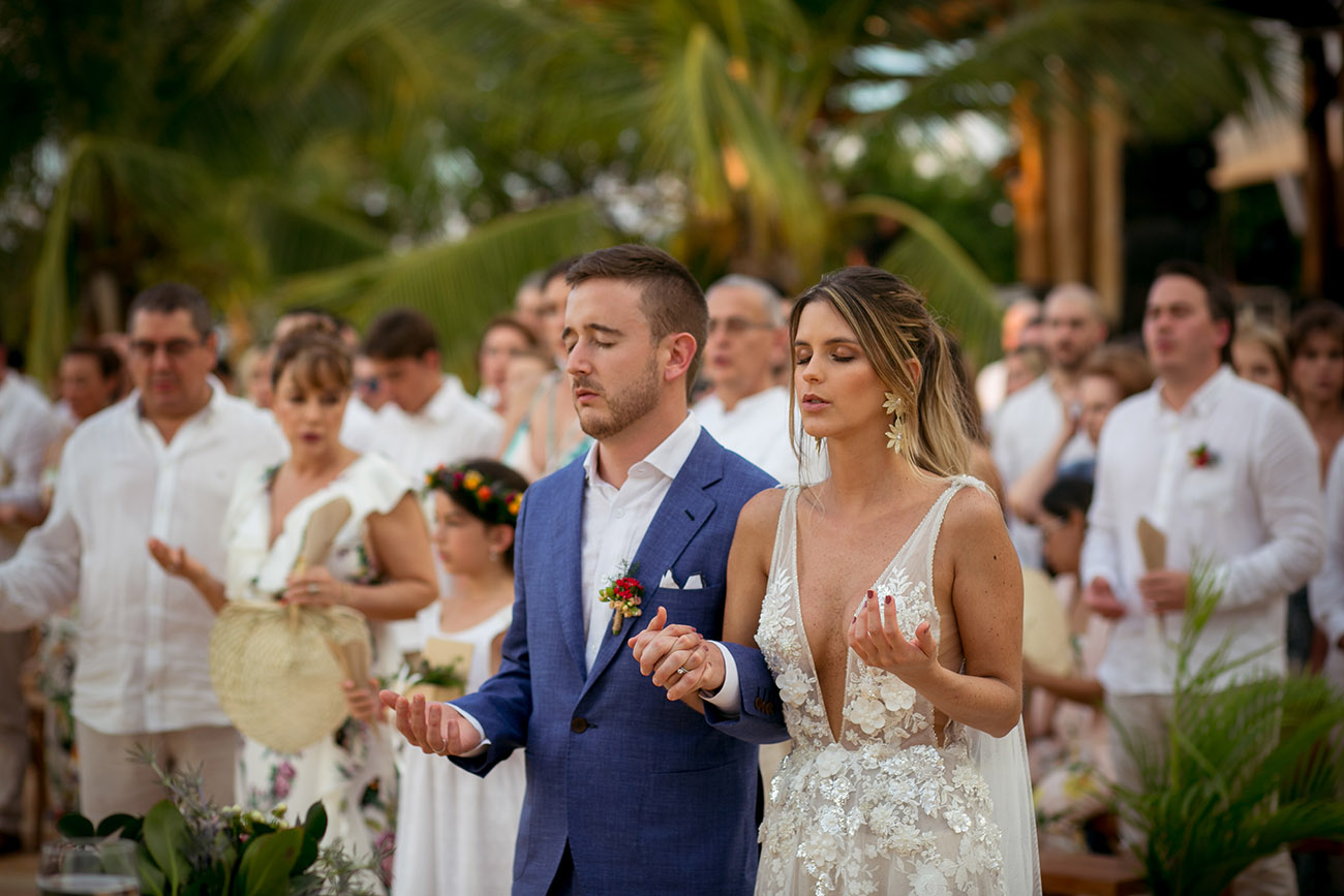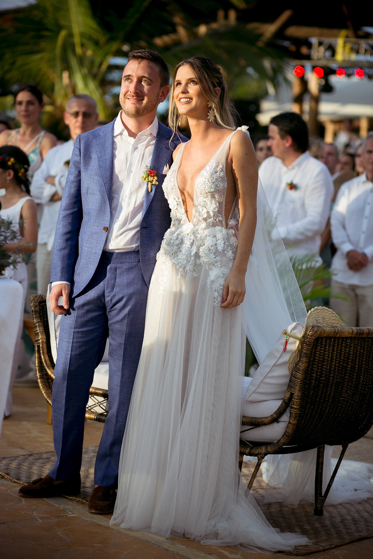 Eran tres las “condiciones” que querían Sara y Mateo: cerca al mar, una wedding planner cómplice y que Pedro Justo Berrío fuera el sacerdote. Gran amigo de la familia de Sara, al que lograron convencer para que viajara hasta Santa Marta. Después de una ceremonia muy emotiva, que, en definitiva, fue el momento más especial —y favorito— para los dos, el padre Pedro evocó a Joaquín Sabina diciendo: "Que todas las noches sean noches de boda, que todas las lunas sean lunas de miel".