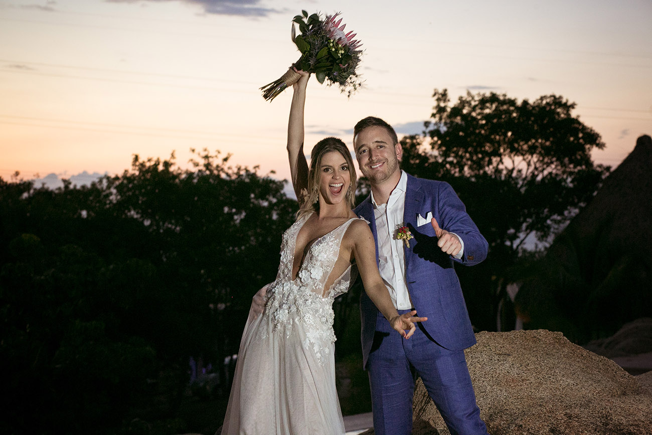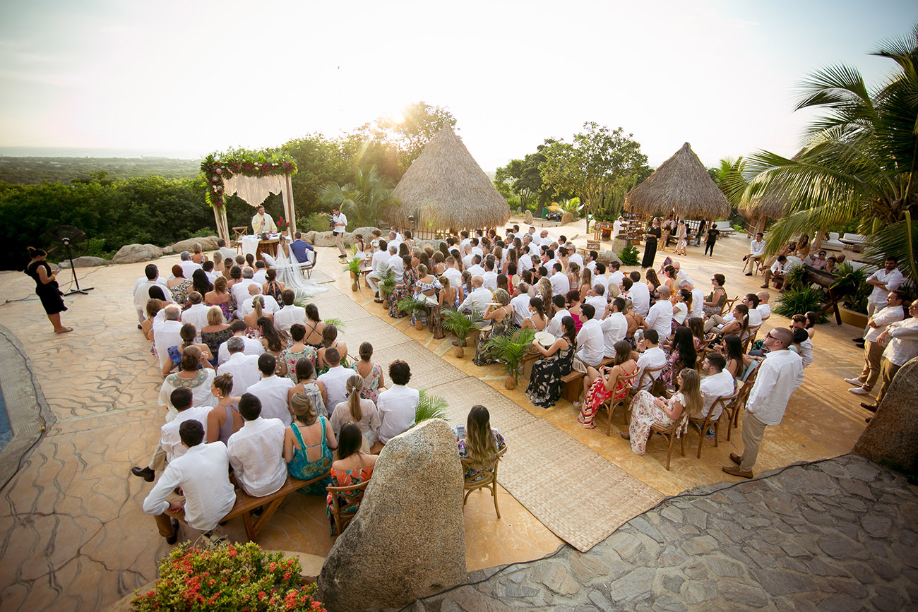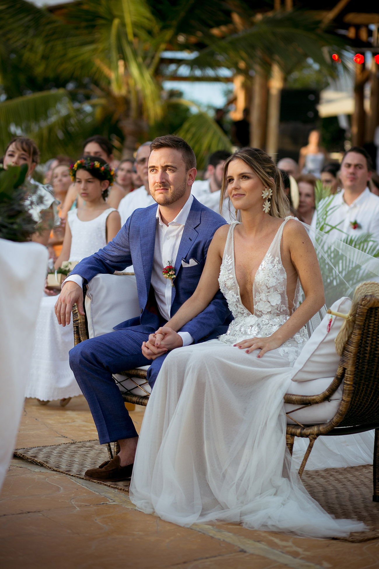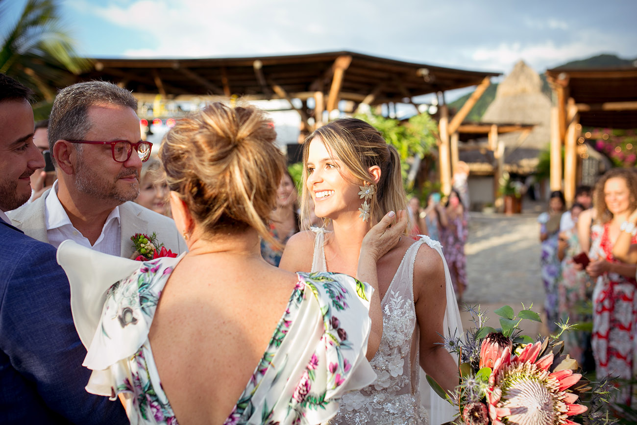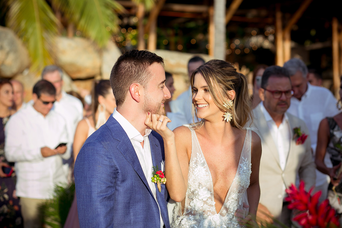 Eran tres las “condiciones” que querían Sara y Mateo: cerca al mar, una wedding planner cómplice y que Pedro Justo Berrío fuera el sacerdote. Gran amigo de la familia de Sara, al que lograron convencer para que viajara hasta Santa Marta. Después de una ceremonia muy emotiva, que, en definitiva, fue el momento más especial —y favorito— para los dos, el padre Pedro evocó a Joaquín Sabina diciendo: "Que todas las noches sean noches de boda, que todas las lunas sean lunas de miel".