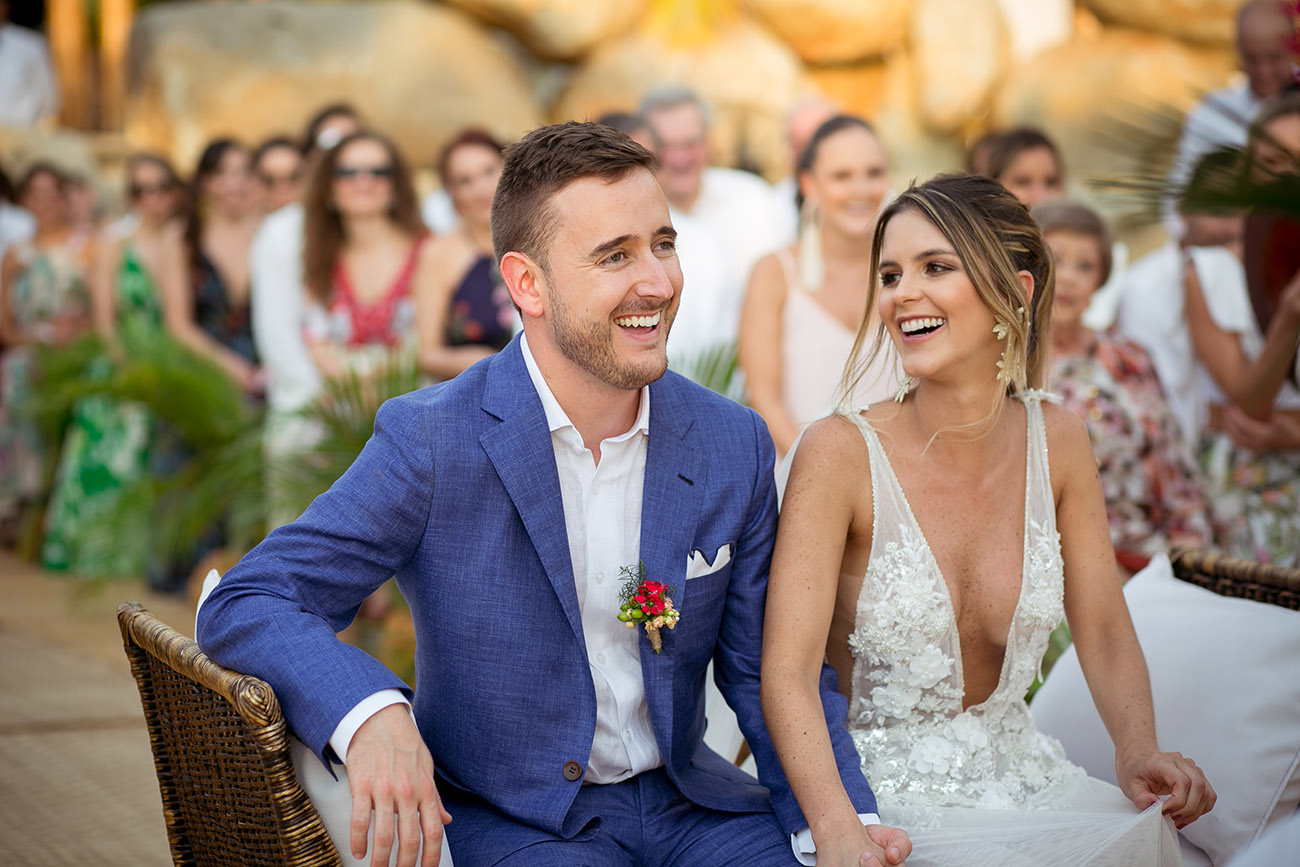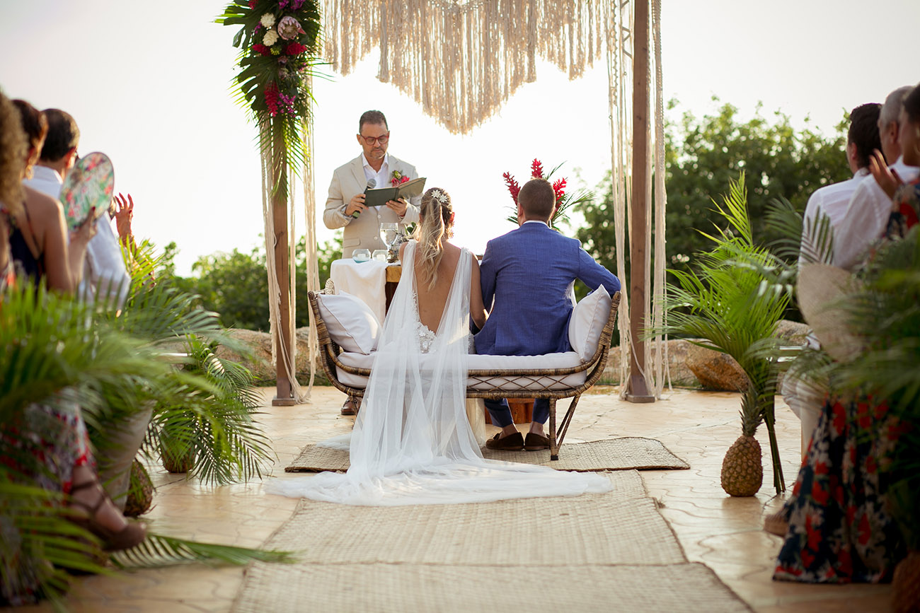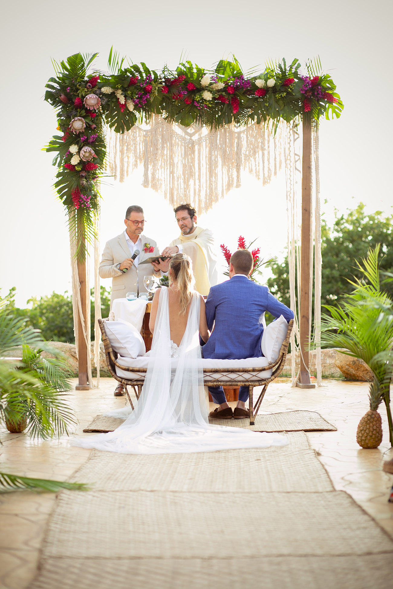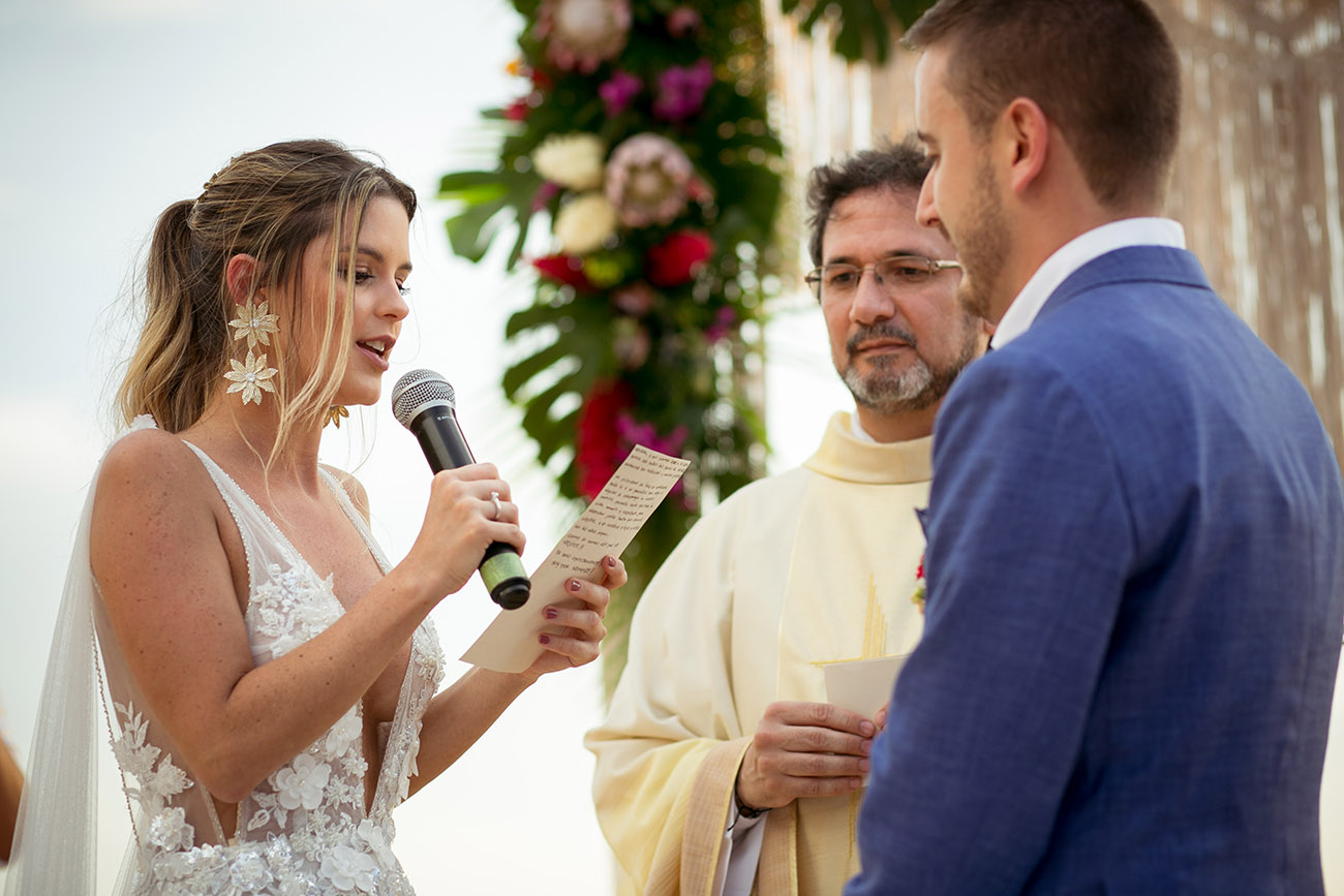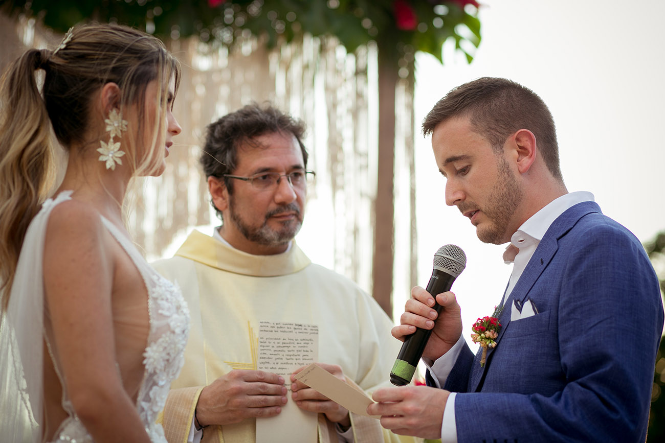 Eran tres las “condiciones” que querían Sara y Mateo: cerca al mar, una wedding planner cómplice y que Pedro Justo Berrío fuera el sacerdote. Gran amigo de la familia de Sara, al que lograron convencer para que viajara hasta Santa Marta. Después de una ceremonia muy emotiva, que, en definitiva, fue el momento más especial —y favorito— para los dos, el padre Pedro evocó a Joaquín Sabina diciendo: "Que todas las noches sean noches de boda, que todas las lunas sean lunas de miel".