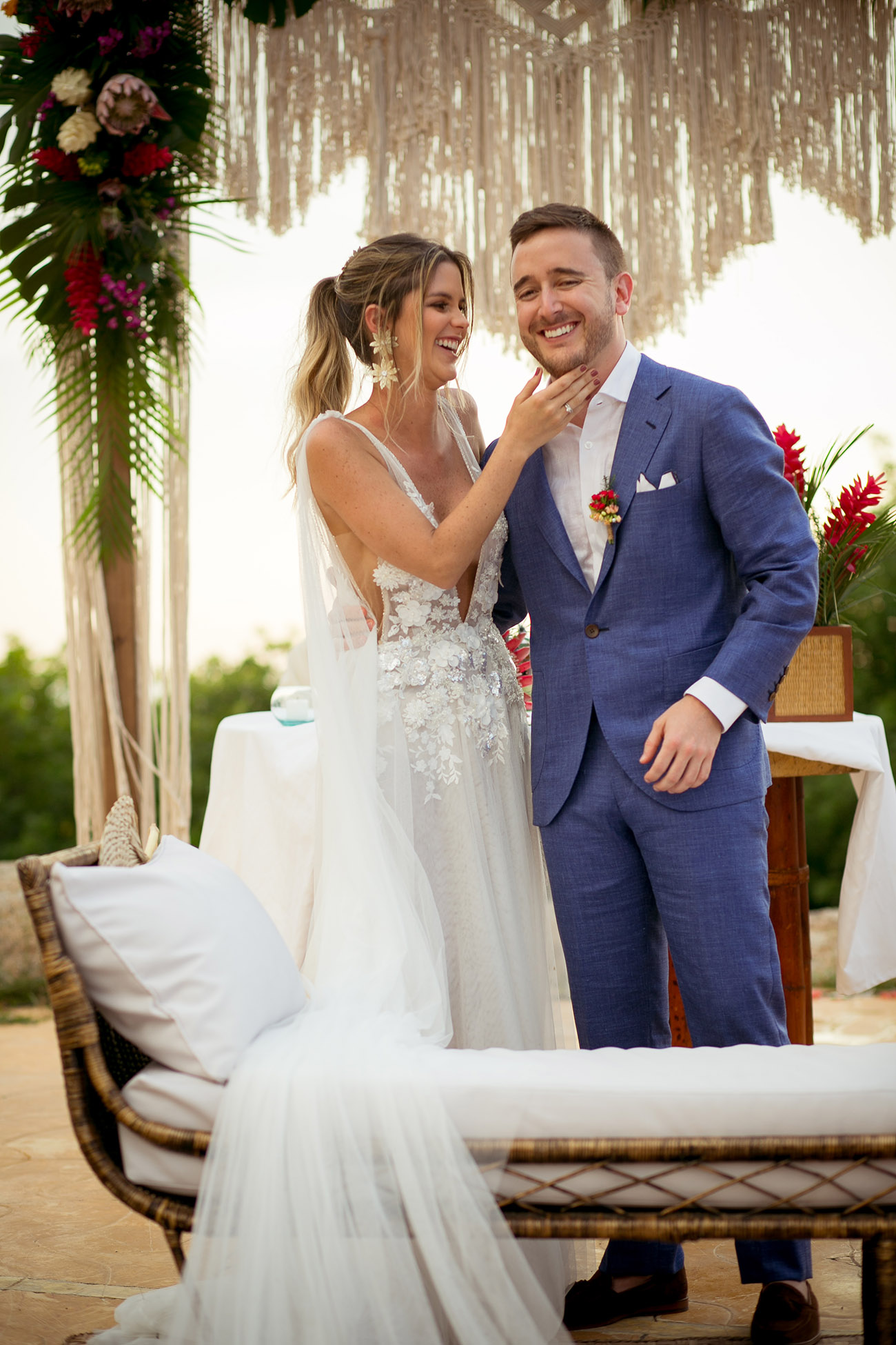 Quién más, sino el mar. La luna de miel fue en Turks & Caicos, una isla en el Caribe, íntima y romántica. A esta pareja, tan vívida y que le gusta quererse tanto, le deseamos mucha playa y mucho viento y que todas las noches sean noches de bodas y todas las lunas, sean lunas de miel.