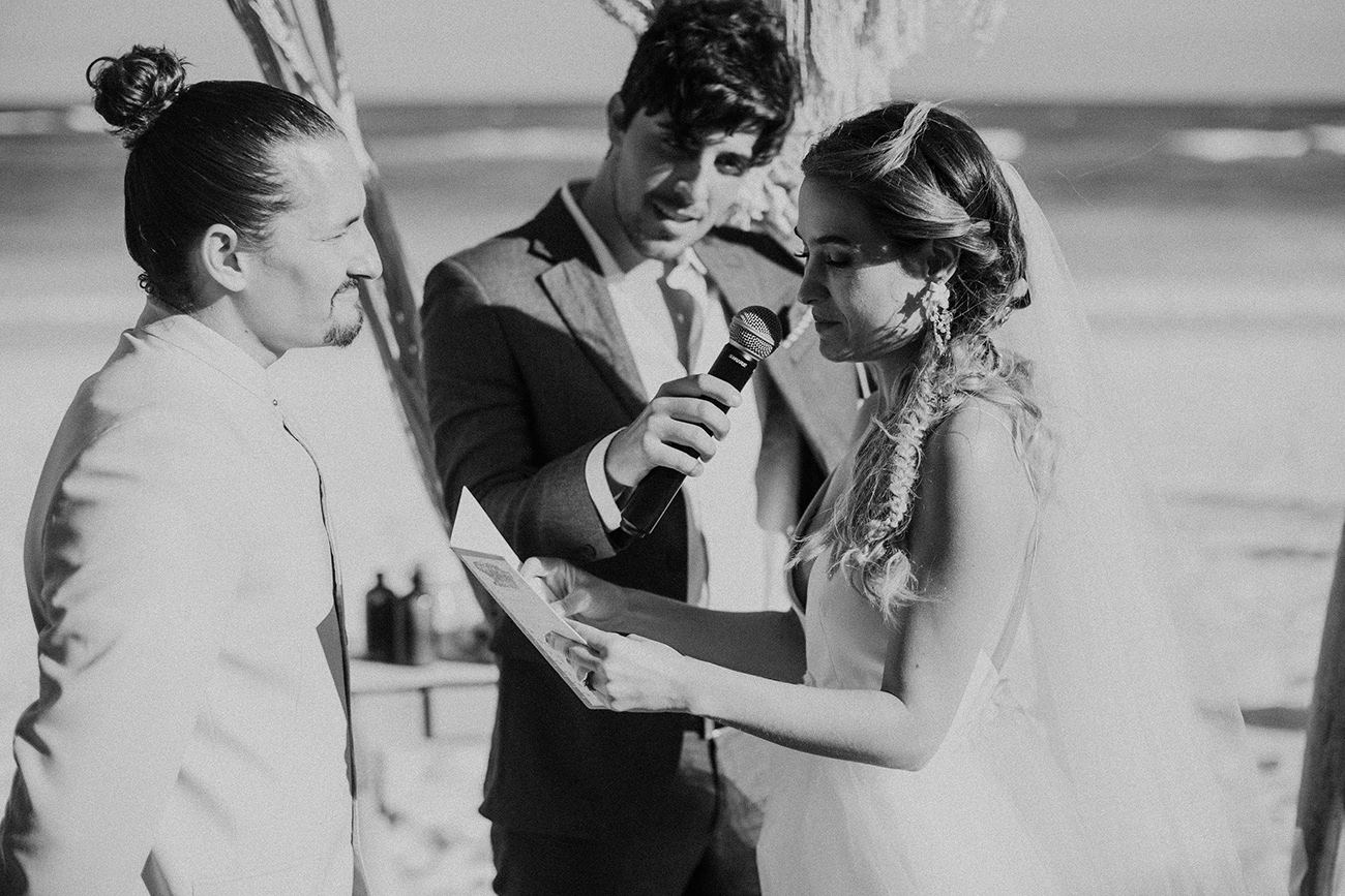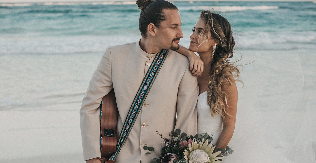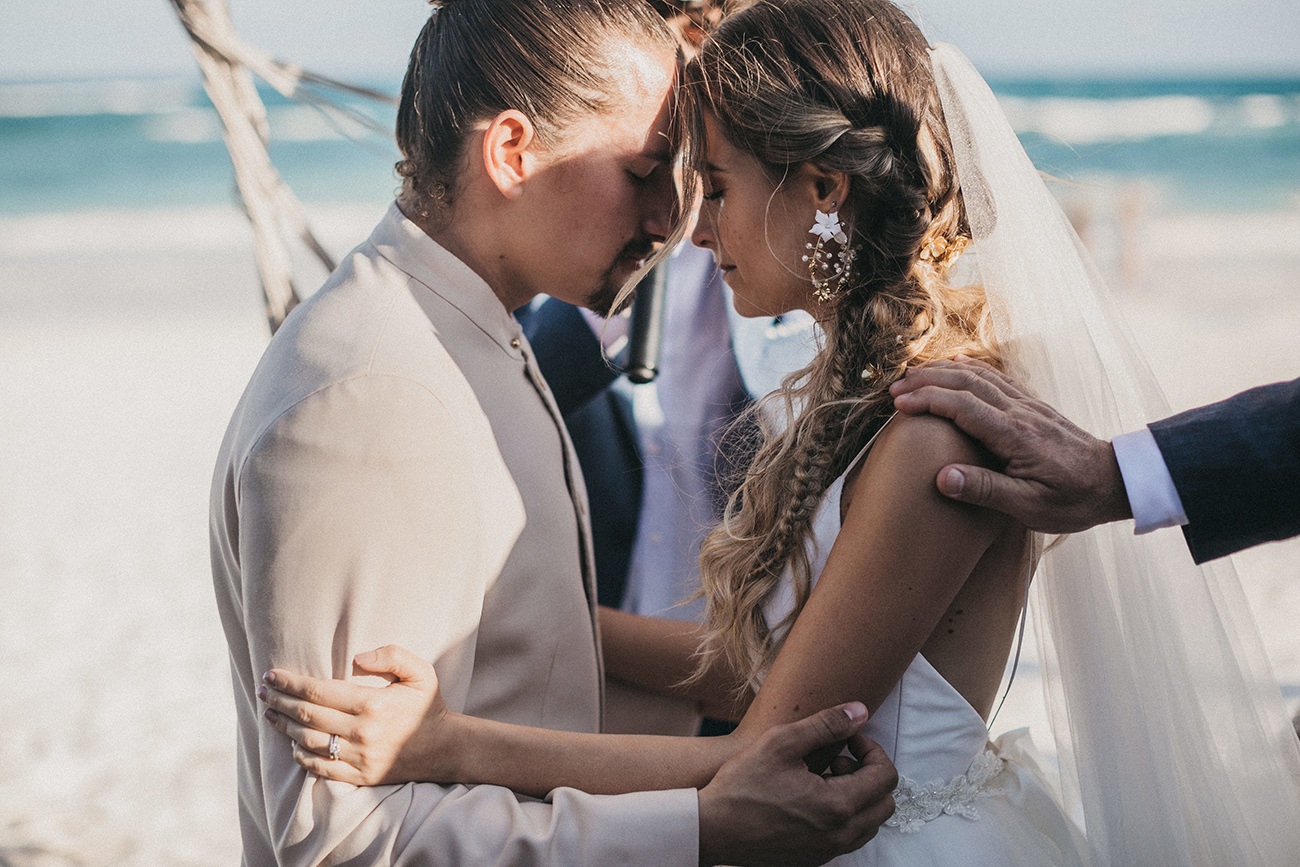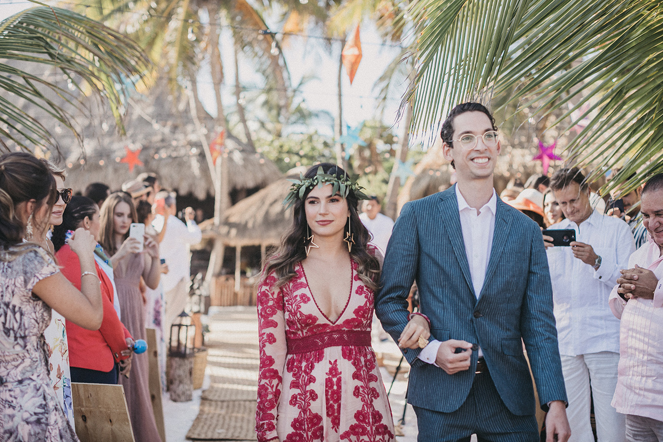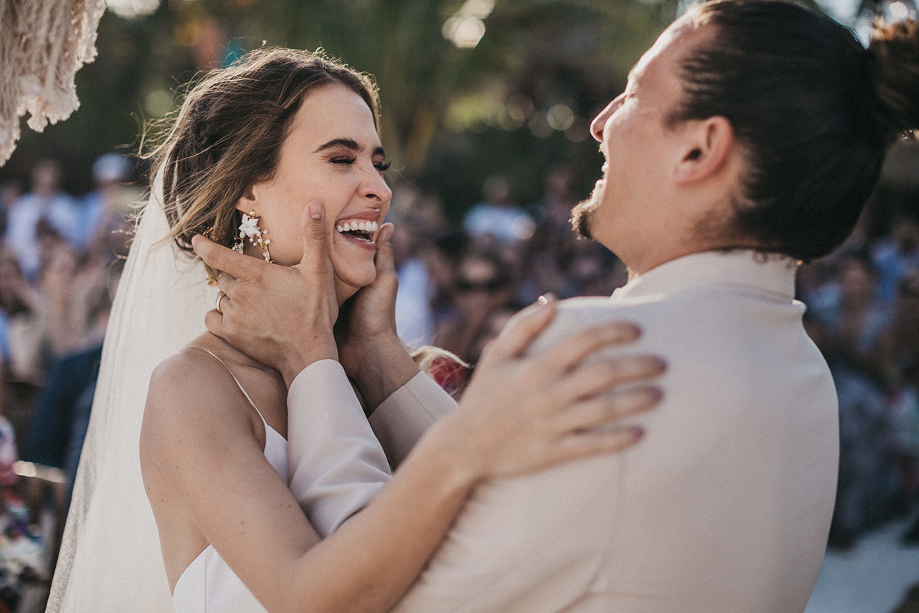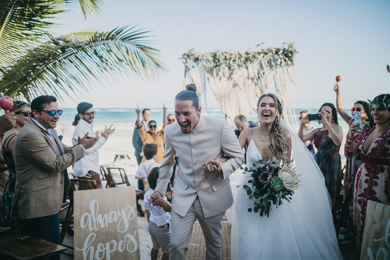 Un 2 de febrero, la playa, el cielo y el mar de Tulum estuvieron en sincronía con el amor de Mau y Sara. Al arco lo acompañaban un arreglo en macramé, hecho por Ancestral y varios pedazos de madera donde se leía aquel versículo de amor. Era el inicio de una ceremonia corta, trascendental, profunda. Era el inicio de otra vida y a la vez de esa misma que habían elegido hacía cinco años.
