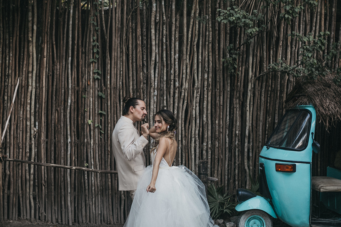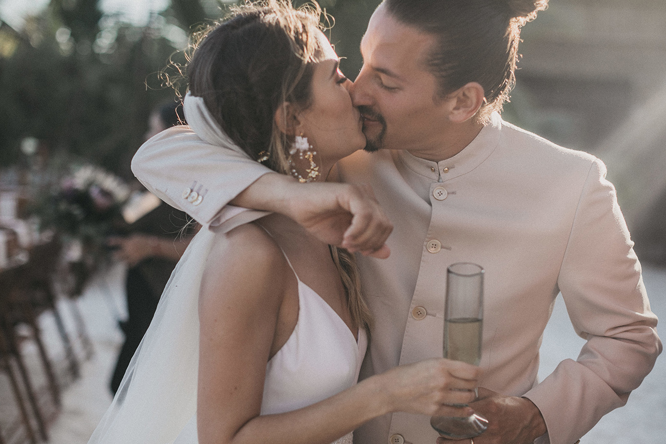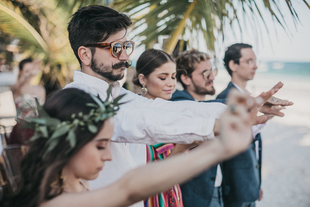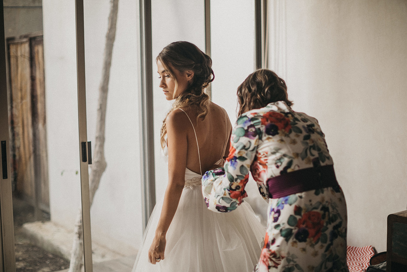 “Siempre digo que las fronteras son líneas que se ha inventado el hombre, así que gracias a Internet esas líneas se han roto. ¿Cómo conocí a Mau y a Sara? Creo que la vida trata también de conexiones. En España, Catalina, de Save the Date, me puso en contacto con Mariana, de La libreta morada, y gracias a ti, Sara, que también es de Medellín, conoció mi trabajo. Una vez estaba en Miami -porque siempre que tengo bodas en Latinoamérica hago escala en esta ciudad- Sara se enteró de que yo estaba allí y me invitó al estudio de grabación de Mau. Pasé una tarde con ellos, nos llevamos súper bien, la energía fue súper buena, y creo que ahí creamos un vínculo. Entonces, un diciembre, Mau no calculó bien la diferencia horaria y me llamó sobre las 12 de la noche diciéndome que le haría mucha ilusión darle la sorpresa a Sara de que yo fuera el fotógrafo de su boda. Y nada, me llevaron así a México, muy contento porque siempre al año tengo unas cuatro o cinco bodas en Latinoamérica, así que siempre estoy encantado de volver”.