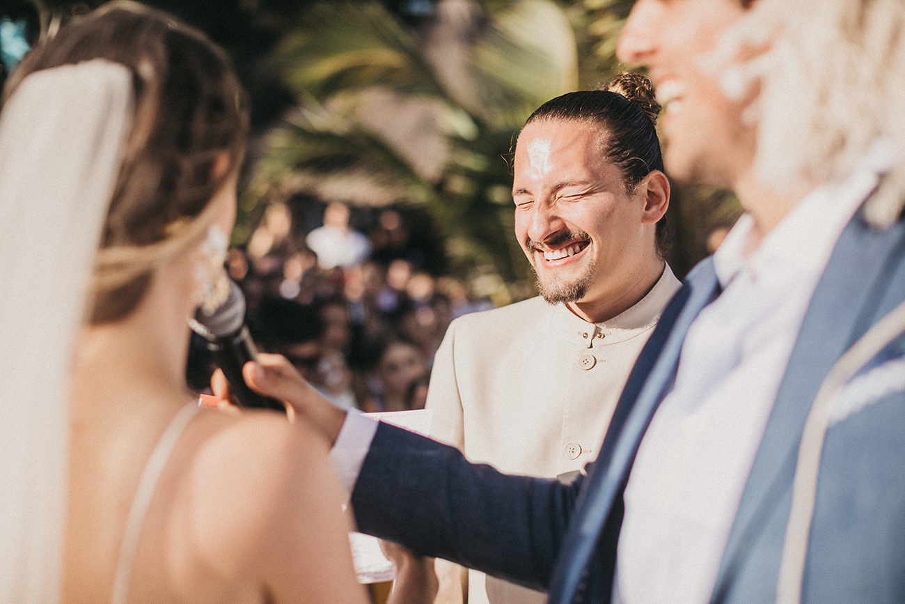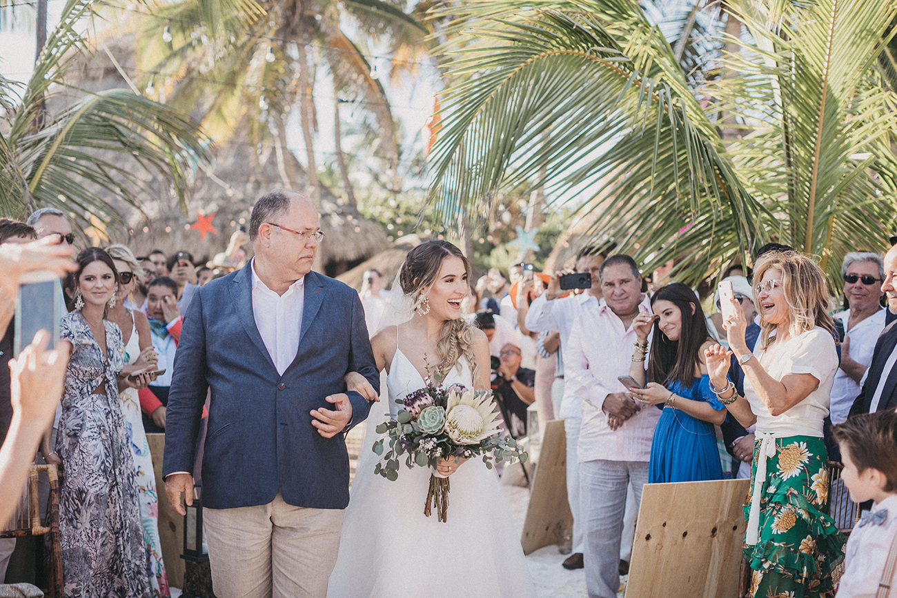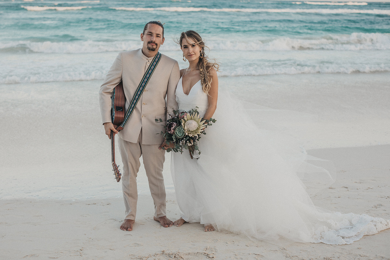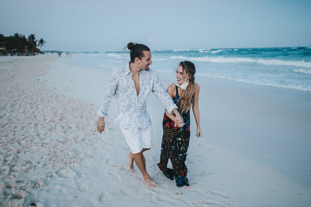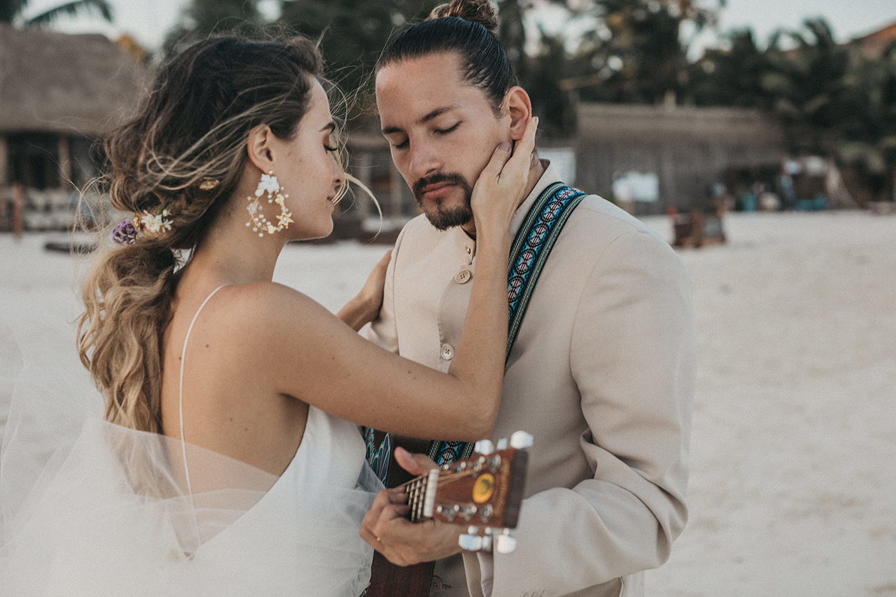“Siempre digo que las fronteras son líneas que se ha inventado el hombre, así que gracias a Internet esas líneas se han roto. ¿Cómo conocí a Mau y a Sara? Creo que la vida trata también de conexiones. En España, Catalina, de Save the Date, me puso en contacto con Mariana, de La libreta morada, y gracias a ti, Sara, que también es de Medellín, conoció mi trabajo. Una vez estaba en Miami -porque siempre que tengo bodas en Latinoamérica hago escala en esta ciudad- Sara se enteró de que yo estaba allí y me invitó al estudio de grabación de Mau. Pasé una tarde con ellos, nos llevamos súper bien, la energía fue súper buena, y creo que ahí creamos un vínculo. Entonces, un diciembre, Mau no calculó bien la diferencia horaria y me llamó sobre las 12 de la noche diciéndome que le haría mucha ilusión darle la sorpresa a Sara de que yo fuera el fotógrafo de su boda. Y nada, me llevaron así a México, muy contento porque siempre al año tengo unas cuatro o cinco bodas en Latinoamérica, así que siempre estoy encantado de volver”.