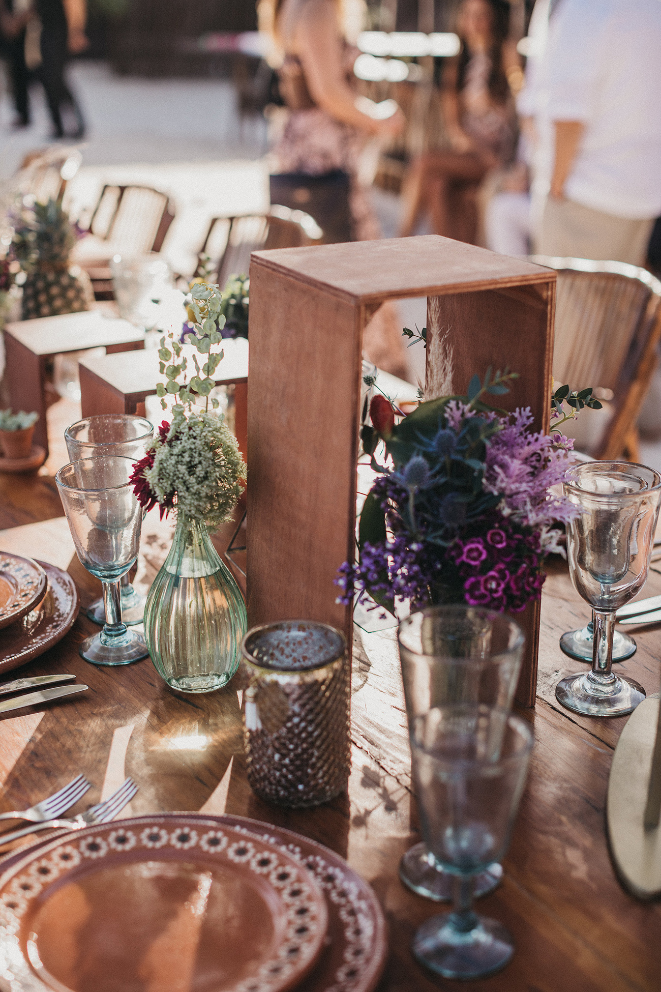 No querían rosas. No querían una decoración uniforme. Querían mantener esa línea donde un matrimonio descomplicado y sencillo era lo que los hacía felices. Sara participó en todo, incluyendo las invitaciones. Las diseñó ella, las marcó su amiga Mariana López, “La Mona”, y junto con su mamá las cerró con un sello de lacre en el que se veían las iniciales de ellos dos. Para la decoración compró muchas cosas por internet: abanicos, farolitos, jaulas, velas. De esta manera, todas las mesas se veían diferentes, no había homogeneidad, sino libertad. Las maracas (que la gente hizo sonar al final de la ceremonia) las mandaron a pintar a mano y la vajilla para la comida también fue hecha artesanalmente, en barro, por mexicanos. Después de la fiesta, la empacaron en cuanta maleta se ofreció. La tienen guardada en su casa por si algún día quieren hacer una fiesta mexicana que les recuerde tanta dicha vivida.