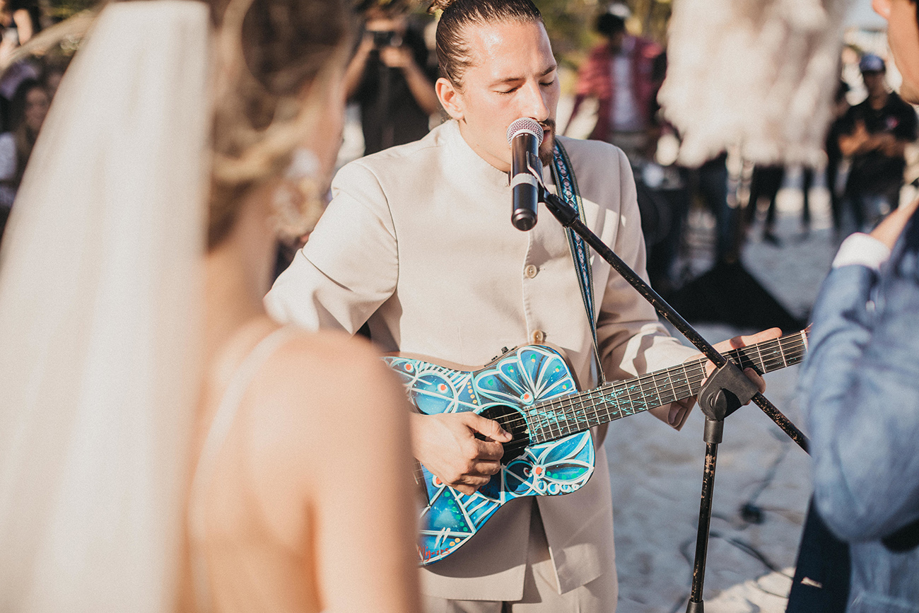 La música, que en esta historia es la vida misma, fue uno de los lenguajes de aquel día. Ricky Montaner y Sofía (su novia) cantaron So I Will, una canción muy especial para los novios. Ricardo y Evaluna cantaron La Gloria de Dios y Mau, en vez de sacar un papel y leer sus votos, afinó la guitarra y los cantó.
