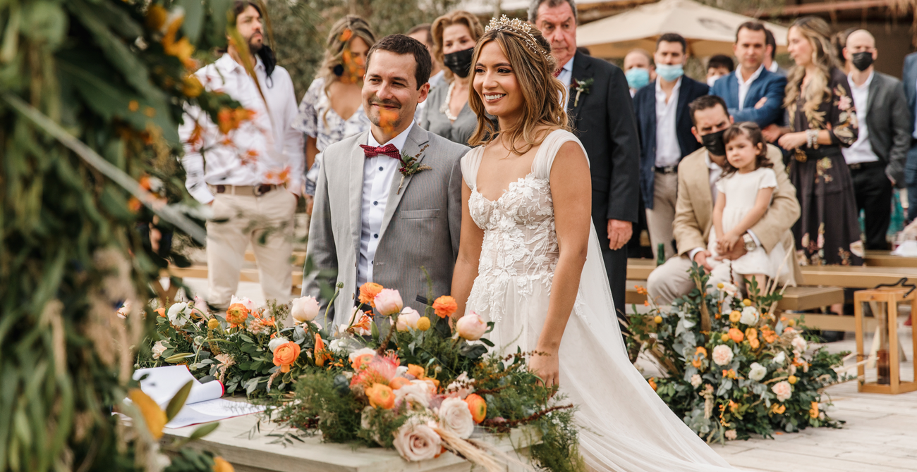 El 2020 fue un año que partió en dos la historia reciente. Y ese cuento ya todos lo conocemos y comprendemos lo angustiante que fue hacer cualquier plan durante ese año. Los novios que querían llegar al altar, como Sara y Santiago, tuvieron que ingeniárselas para poder hacer el matrimonio de sus sueños, sortear dificultades, esperar que el gobierno terminara el confinamiento que cada semana aumentaba, soñar en medio del temor a contagiarse de covid-19, pensar en cuántos familiares, sobre todo adultos mayores, no podrían asistir, hacer recortes en el presupuesto, pues no era el año para tirar la casa por la ventana, lidiar con la incertidumbre de “¿Será que nos van a volver a encerrar?”, eso sumado todo lo que implica planear una boda.