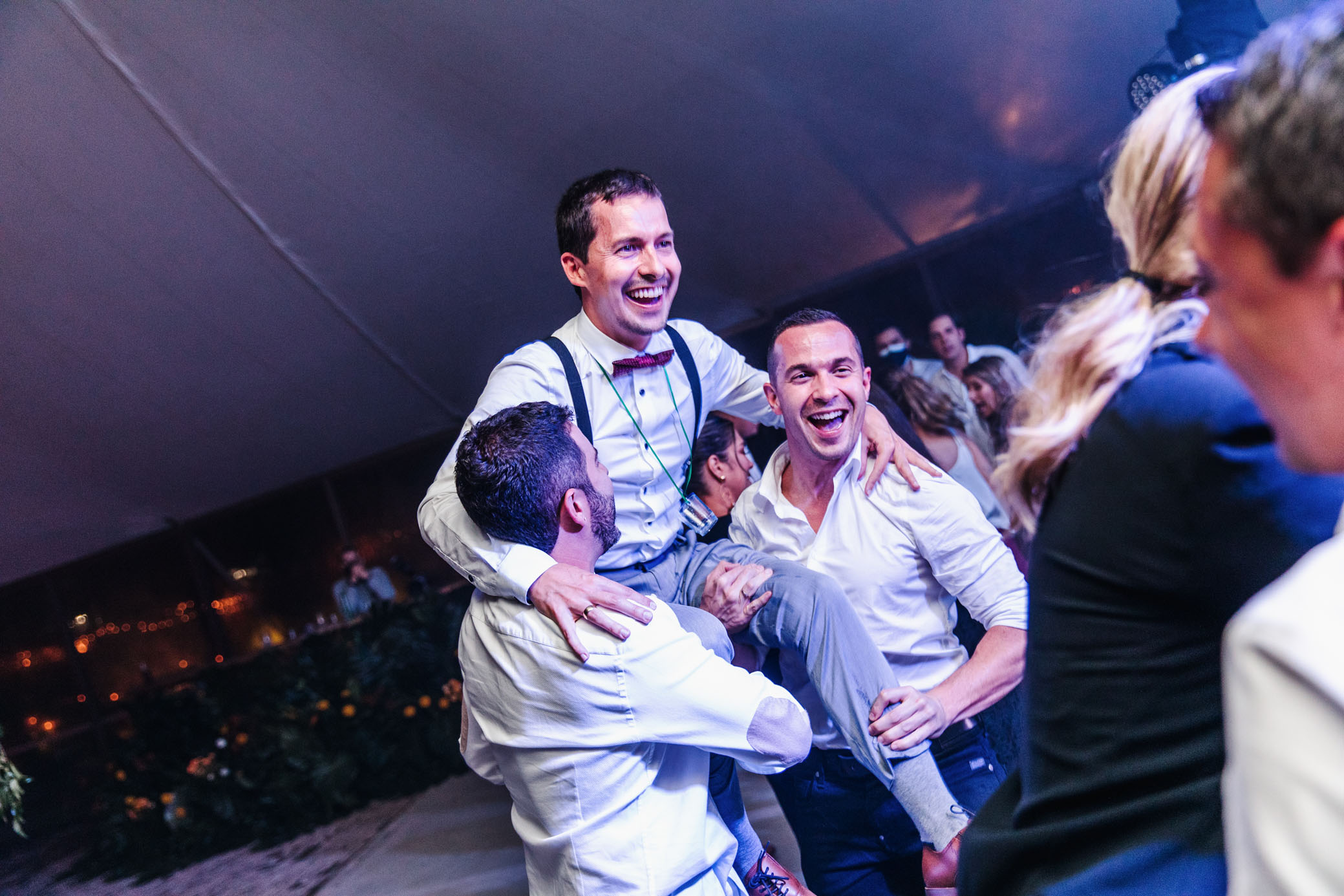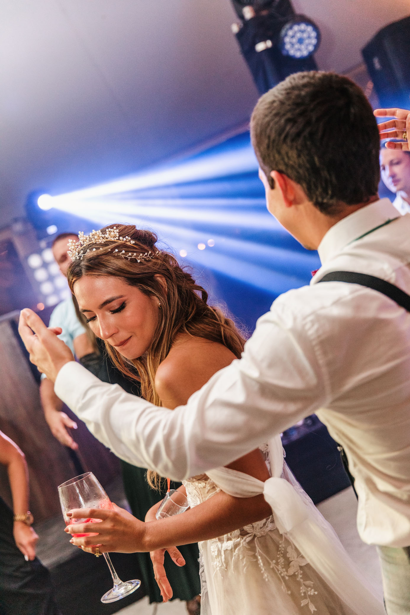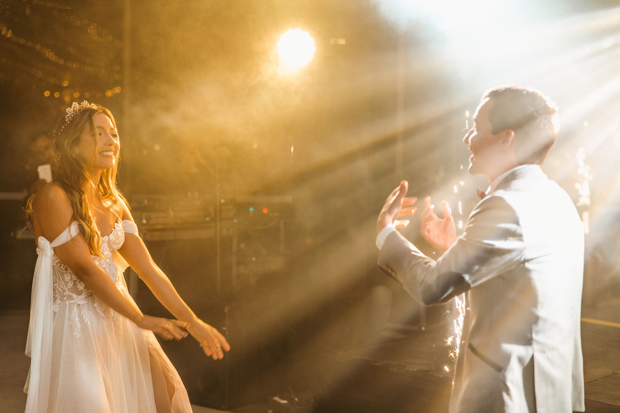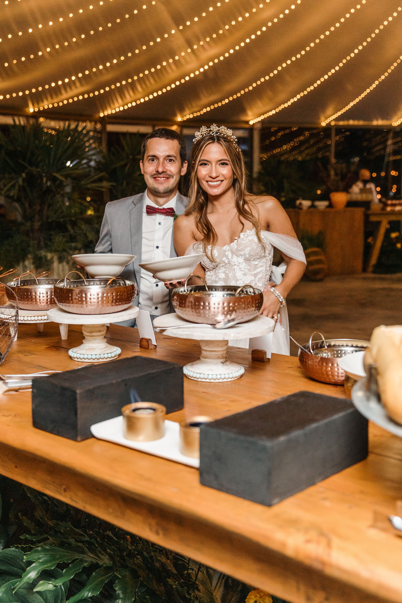 Llegó la hora de bailar y comenzar la fiesta. Sara y Santiago tenían muy claro que querían abrir la pista de baile con una canción de reggaetón, no querían nada lento ni romántico. Tampoco bailar en pareja. Querían algo muy movido y alegre, espontáneo, que motivara a los invitados a unirse a la pista y empezar la rumba. La cena incluía dos tipos de pastas con tres salsas a elección y una opción vegetariana. Una mesa de postres a cargo del papá de María Susana, una de las mejores amigas de Sara, y gelato de Amoracuyá. Todo muy italiano, en honor al país favorito de los novios. Por medidas de bioseguridad, la fiesta solo podía ser hasta las 12 de la noche. Sara, rendida, se durmió a las 10 no sin antes cumplir su último deseo: pedir pizzas para todos los invitados que ya estaban con varios tragos encima y cansados de tanto bailar.