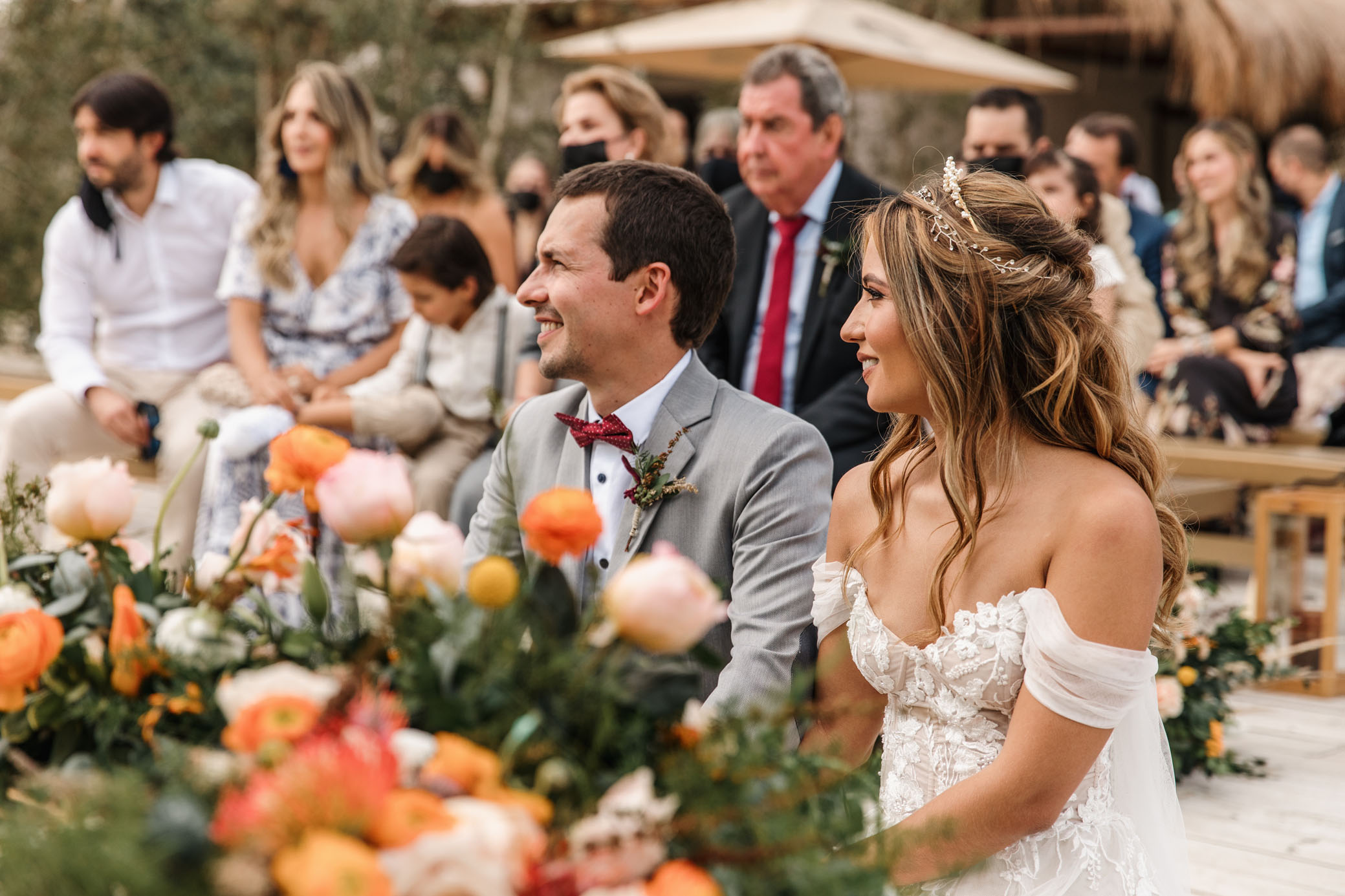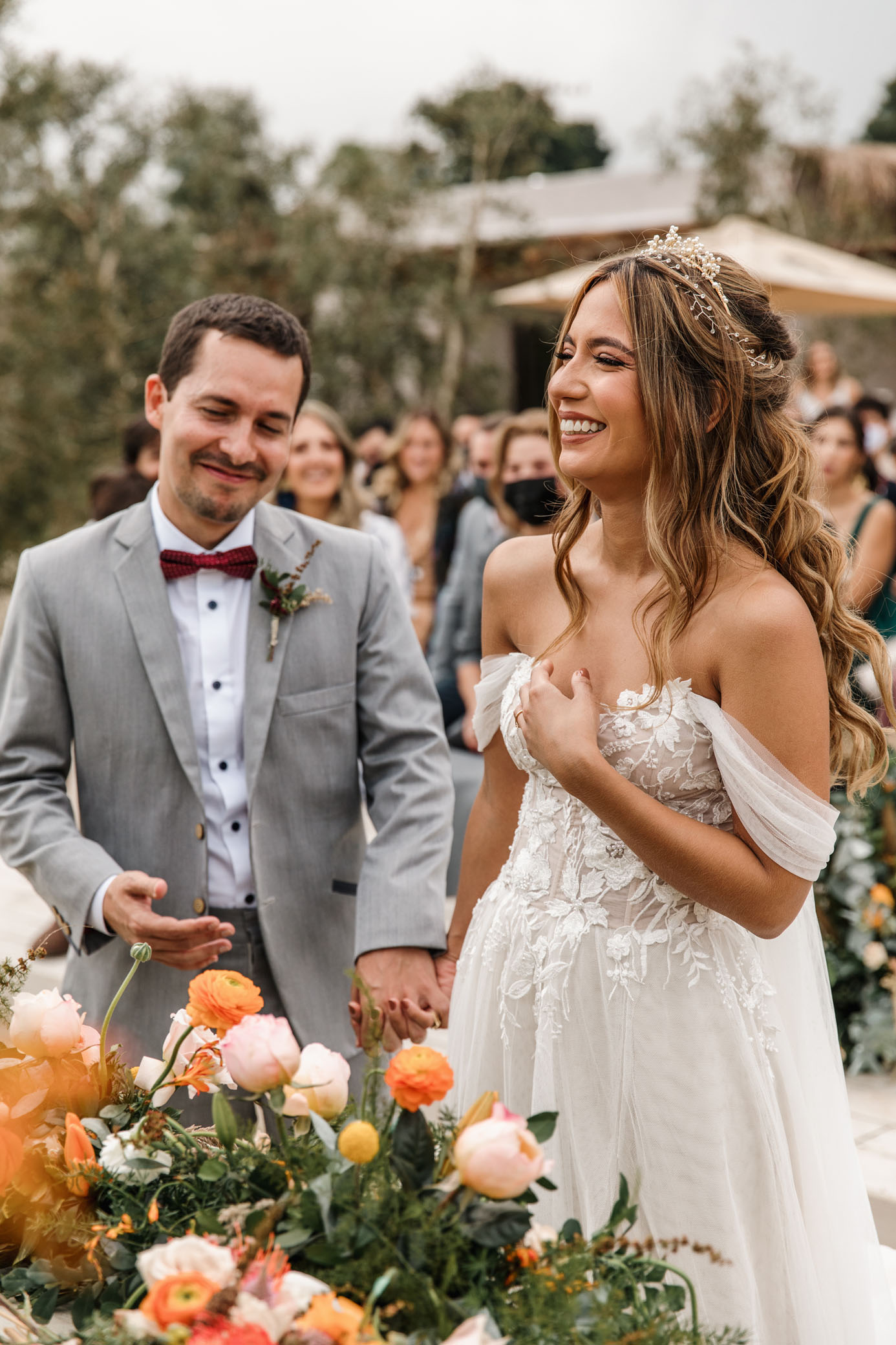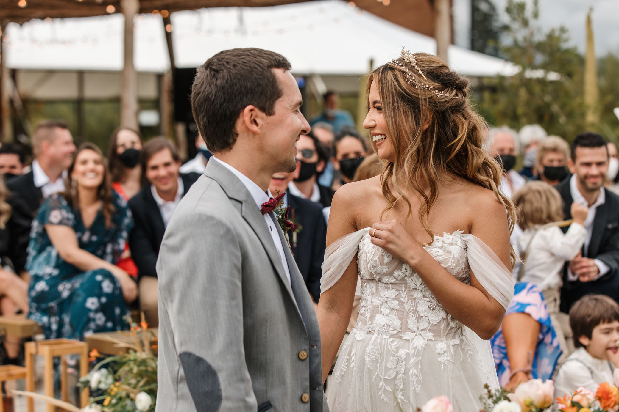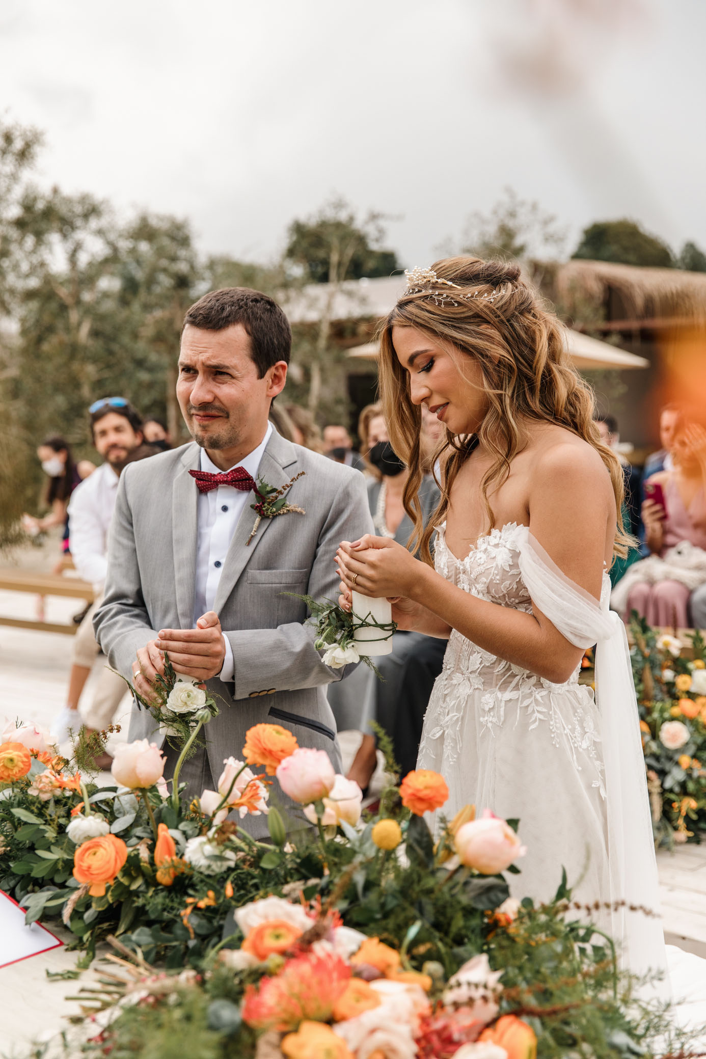Pero Sara y Santiago, que ya habían esperado lo suficiente, continuaron planeando su sueño, decidieron hacer una boda que reflejara la esencia de lo que ellos son y de sus gustos compartidos. Además, incluyeron un criterio de economía colaborativa para apoyar emprendimientos de amigos y conocidos pues en un año tan duro querían, no solo cumplir su sueño, sino ayudar a que los sueños de los demás siguieran creciendo. Fijaron la primera fecha para el 17 de octubre de 2020, un mes especial para ellos por su aniversario de novios, sin embargo, con tantas restricciones y tanta incertidumbre la movieron para el 21 de marzo del siguiente año.