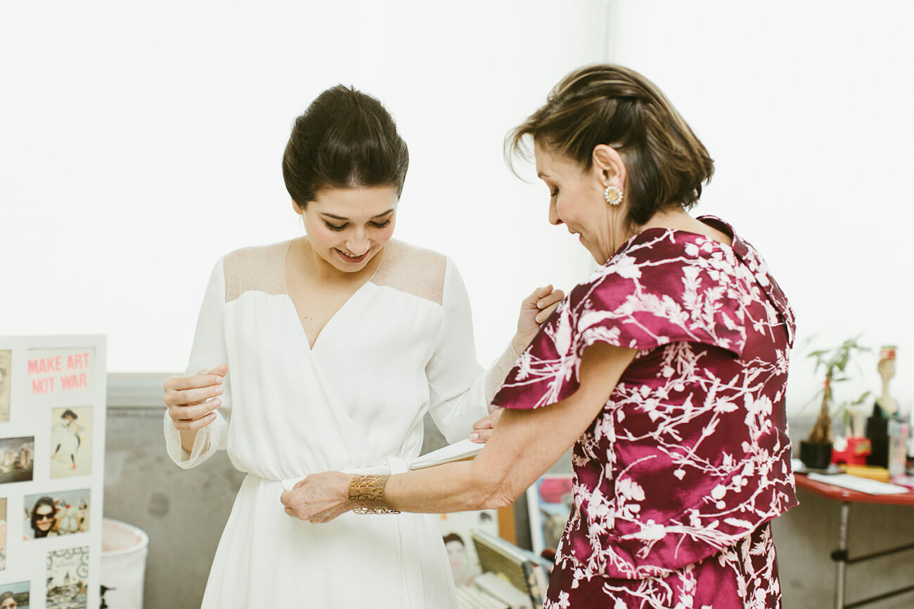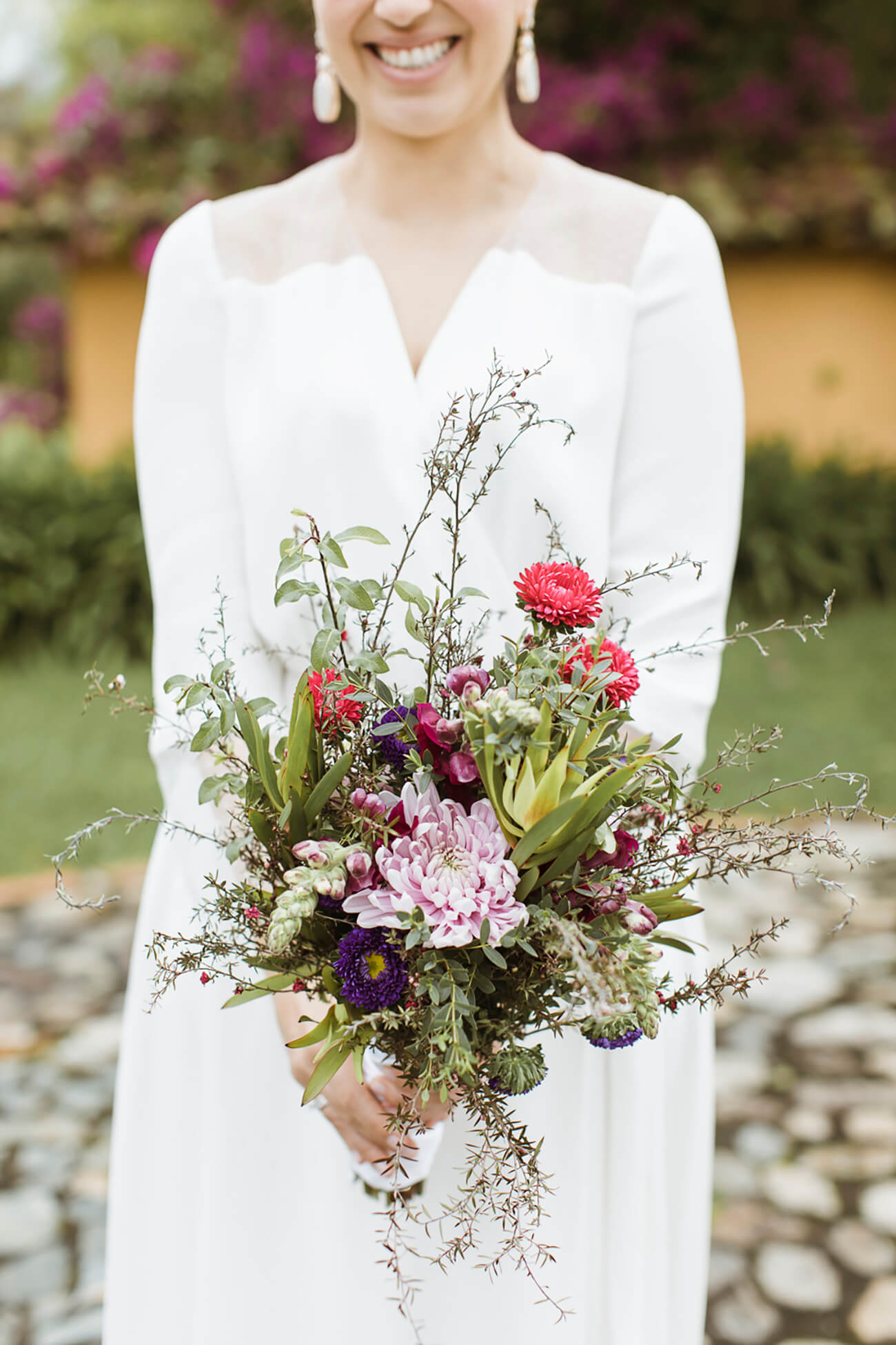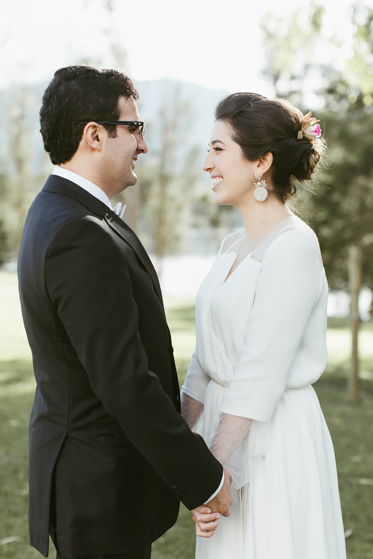 O un diseño estilo vintage, tipo Laure de Sagazan, o algo muy, muy, muy sencillo, era el deseo de Susi para su vestido de novia. “David ODIA los encajes y la idea era que a él también le gustara mi elección. Entonces me fui por la segunda opción, un vestido muy básico. Siempre supe que quería que fuera manga larga, siempre supe que no quería nada con mucho volumen”. Siempre quiso, también, acompañarlo con flores en su peinado y un maquillaje muy natural. Y así fue.