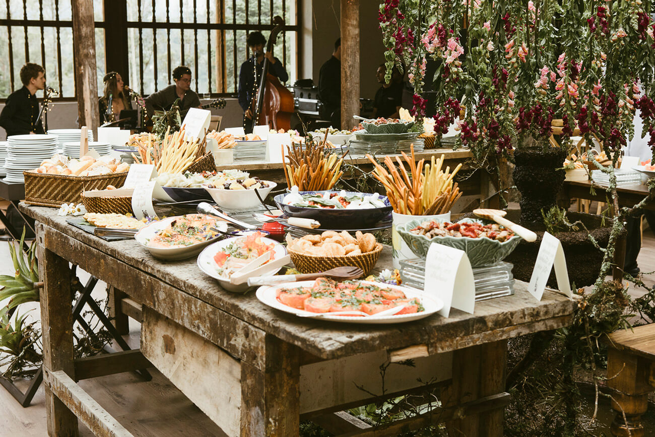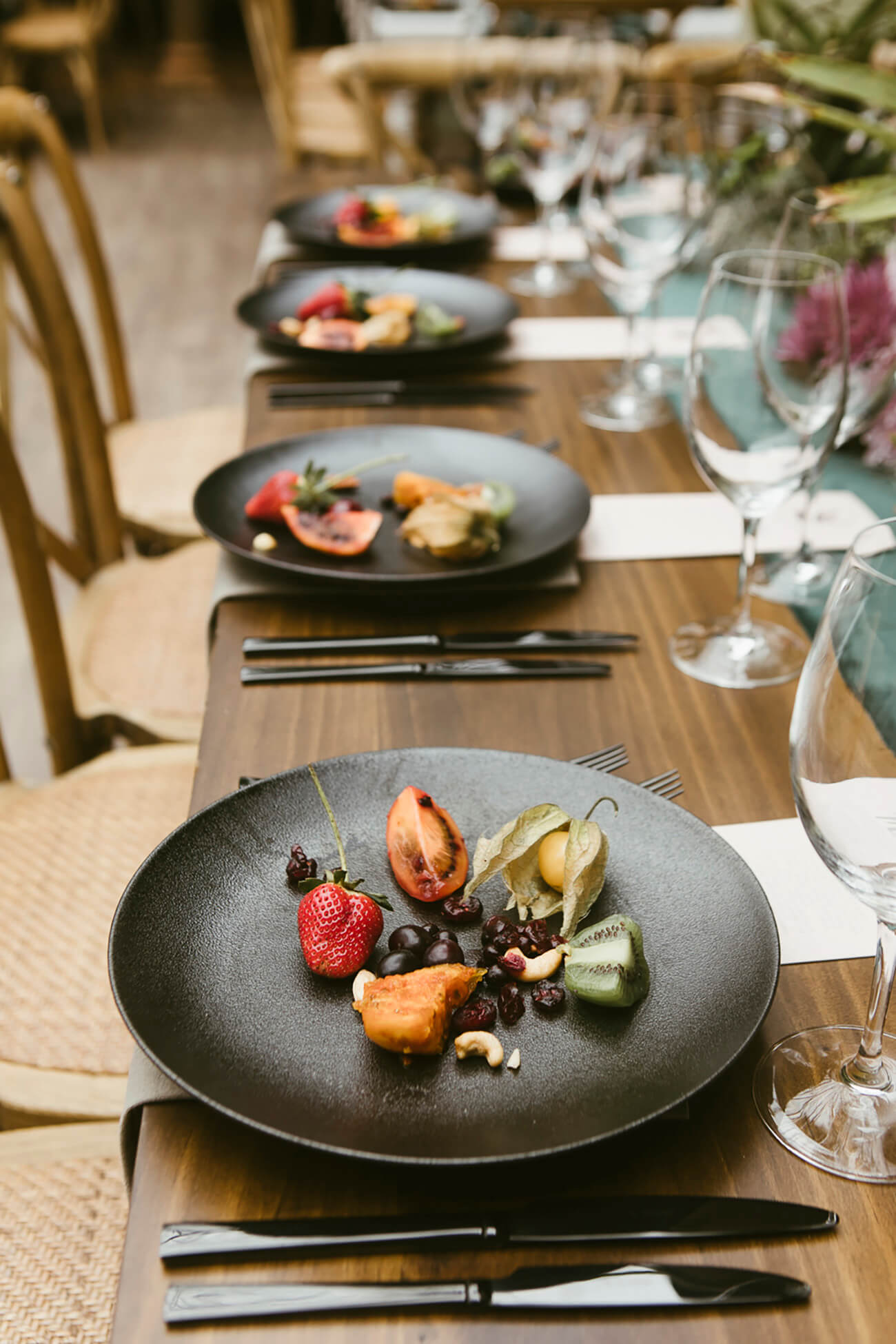 Casarse de día, a las 10 de la mañana, y celebrar con un brunch, fue otra apuesta salida del libreto. “Siempre quise casarme con un brunch. No soy de fiestas ni de hora loca. Lo que más disfruto del día es el desayuno, incluso es mi parte preferida de viajar, el desayuno del hotel. Afortunadamente, David piensa igual”. Esta decisión, cuenta Julián, permitió servir frutas, helados, huevos y muchas otras cosas que usualmente no se elaboran para un menú nocturno. “Desarrollamos muchos productos con María Adelaida Moreno y su equipo de La Provincia. La verdad resultó creativo y muy conectado con el tema, pues recibimos con un ‘paisaje de frutas del bosque’ y cerramos la tarde con una ‘minestrone del campo’”.