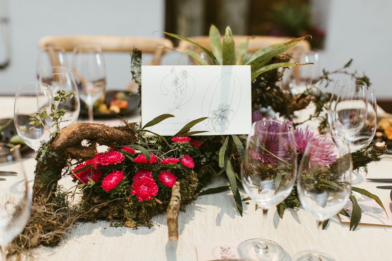 Una mañana lluviosa, una tarde fresca. Un bosque “imaginario”, un brunch para celebrar. Cada elemento de esta boda -espejo de las pasiones de los novios- está lleno de significado. Muchas flores, animalitos ilustrados y buena música. Un día inolvidable. Para ellos, para todos.