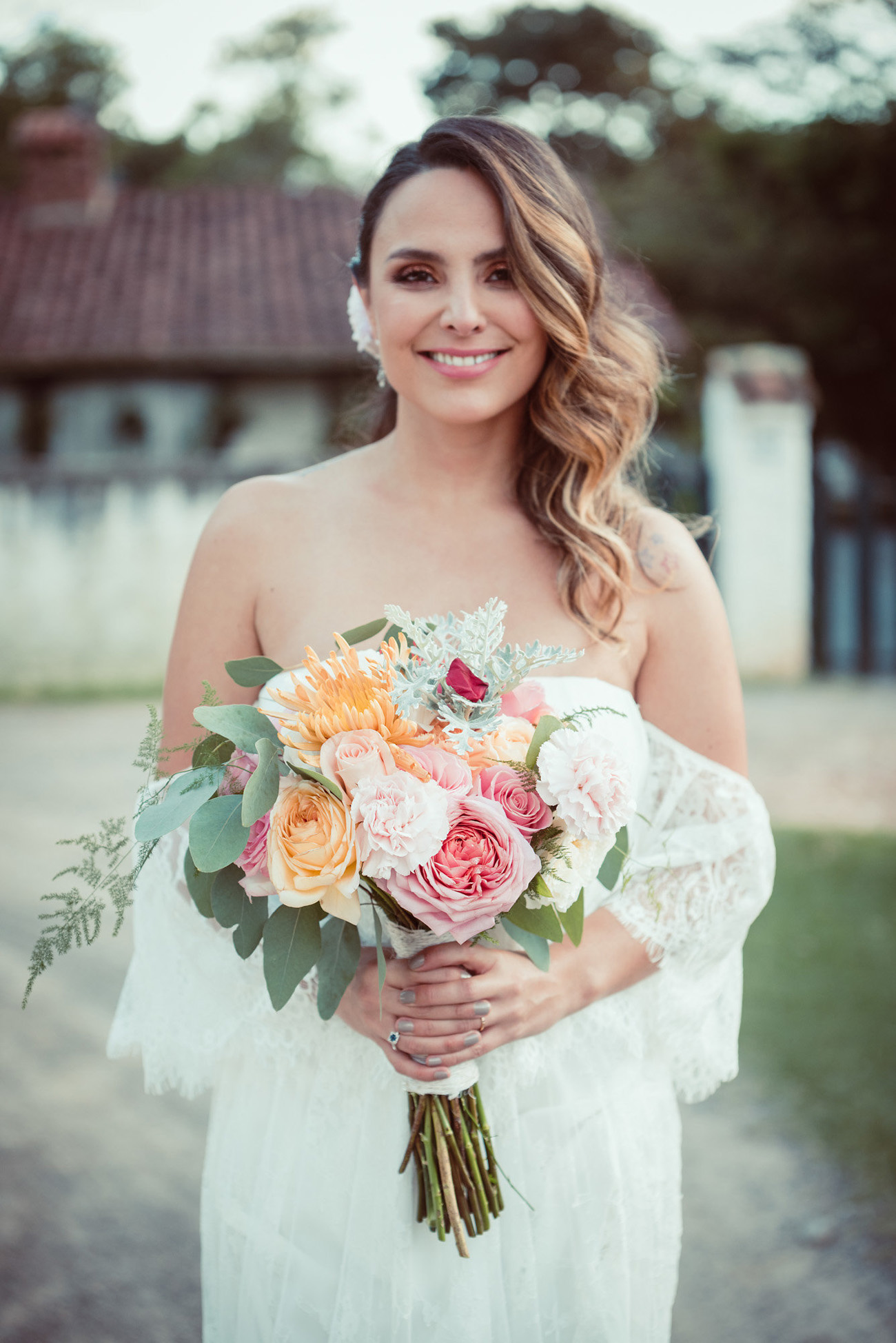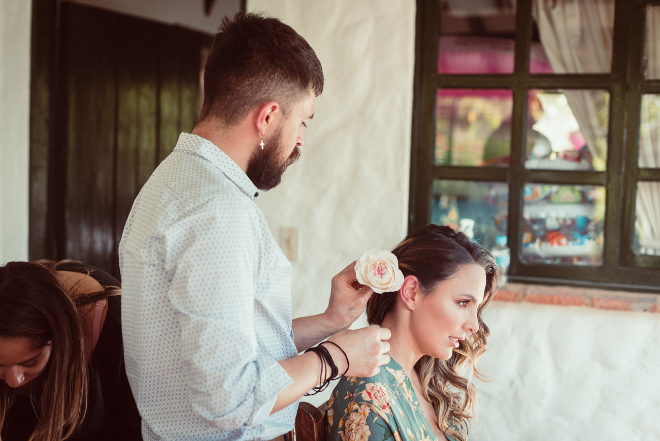 “El ramo y las flores de mi cabeza las hizo el mejor amigo Carolina, que es un teso y tiene una de las empresas de decoración más divinas del país. Entonces fui muy consentida, él se fajó y lo hizo tal cual yo quería. Fue una de las cosas más lindas del matrimonio, debo decirlo. En cuanto al peinado, vimos algunos recogidos, pero la verdad me veía aseñorada y eso jamás, entonces salimos con la idea de ponerlo a un lado, con las ondas y pegaba muy bien con el corte del vestido”.