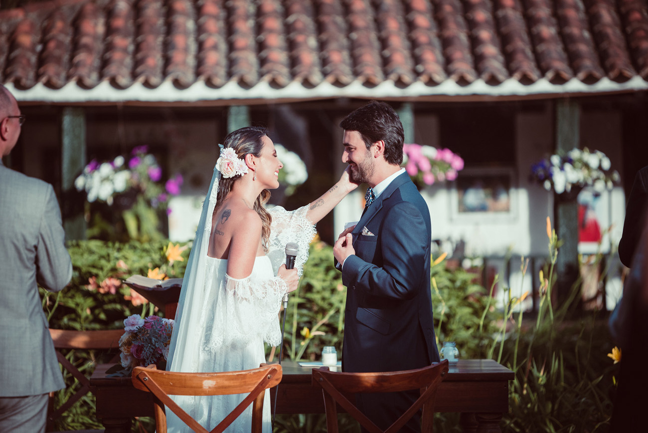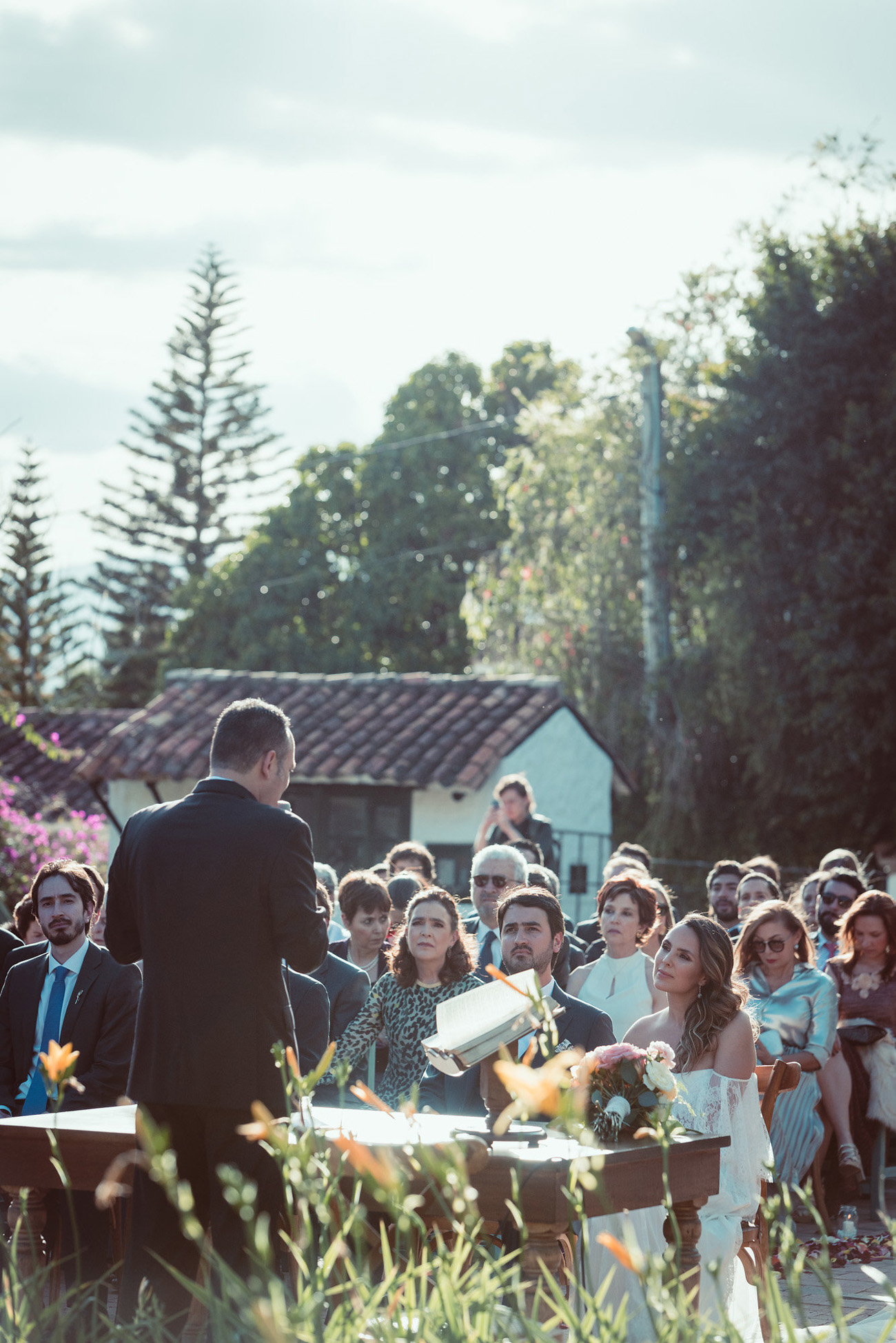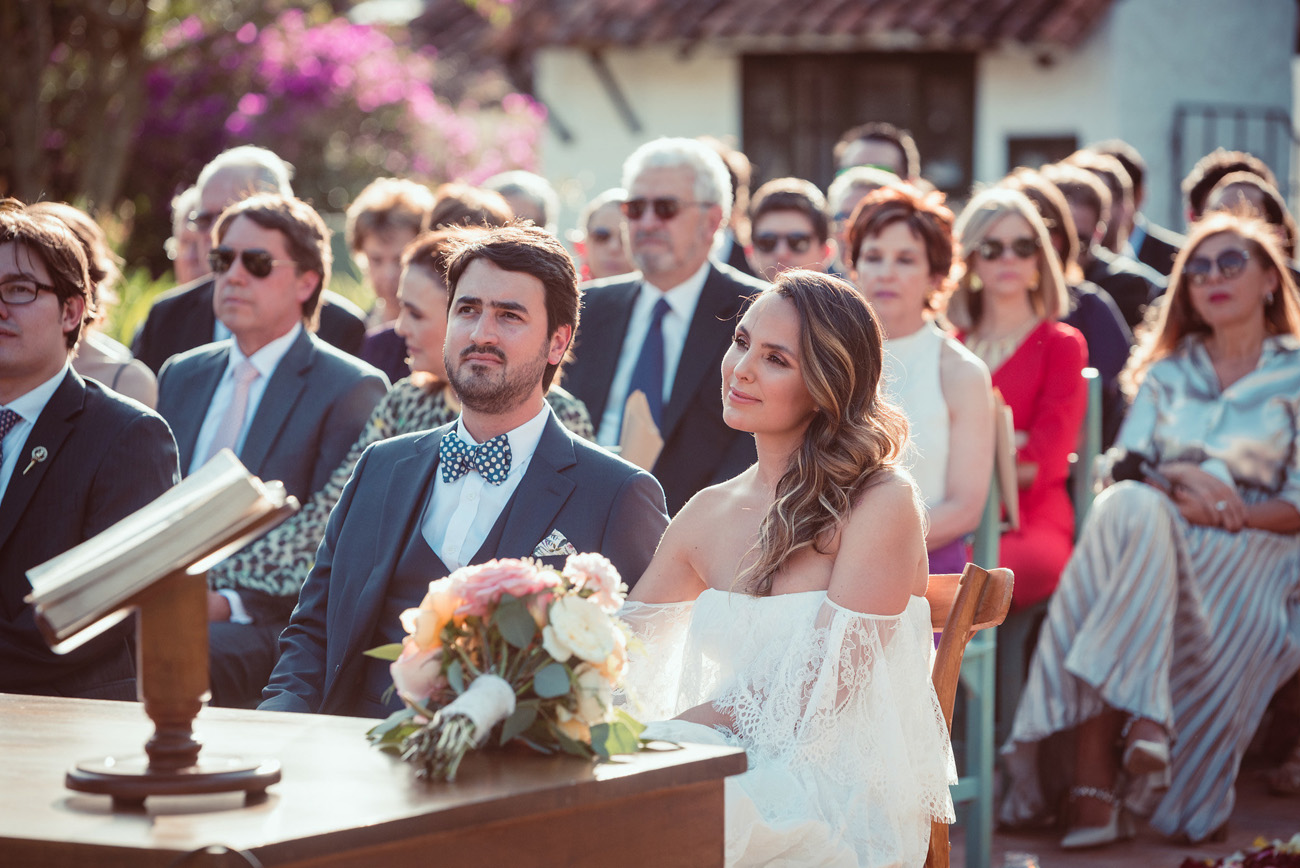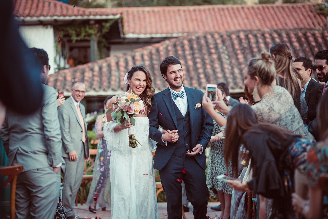 “Tuvimos claro que no queríamos que fuera una ceremonia católica. Alejandro es ateo y yo siempre había querido que uno mis hermanos, que es ministro en una iglesia de Estados Unidos, nos casara. Fue un momento divino porque además de la magia del lugar, que fue espectacular, se veía la montaña prefecta y nos hizo una tarde muy bonita. A mí me entró mi hermano mayor, que es como mi papá, entonces que tus hermanos hombres hayan estado involucrados lo hizo mágico. Tuvimos también las arras de mi abuela, ella las usó en su matrimonio hace 70 años. Fue lindo tenerla ahí de alguna manera”.