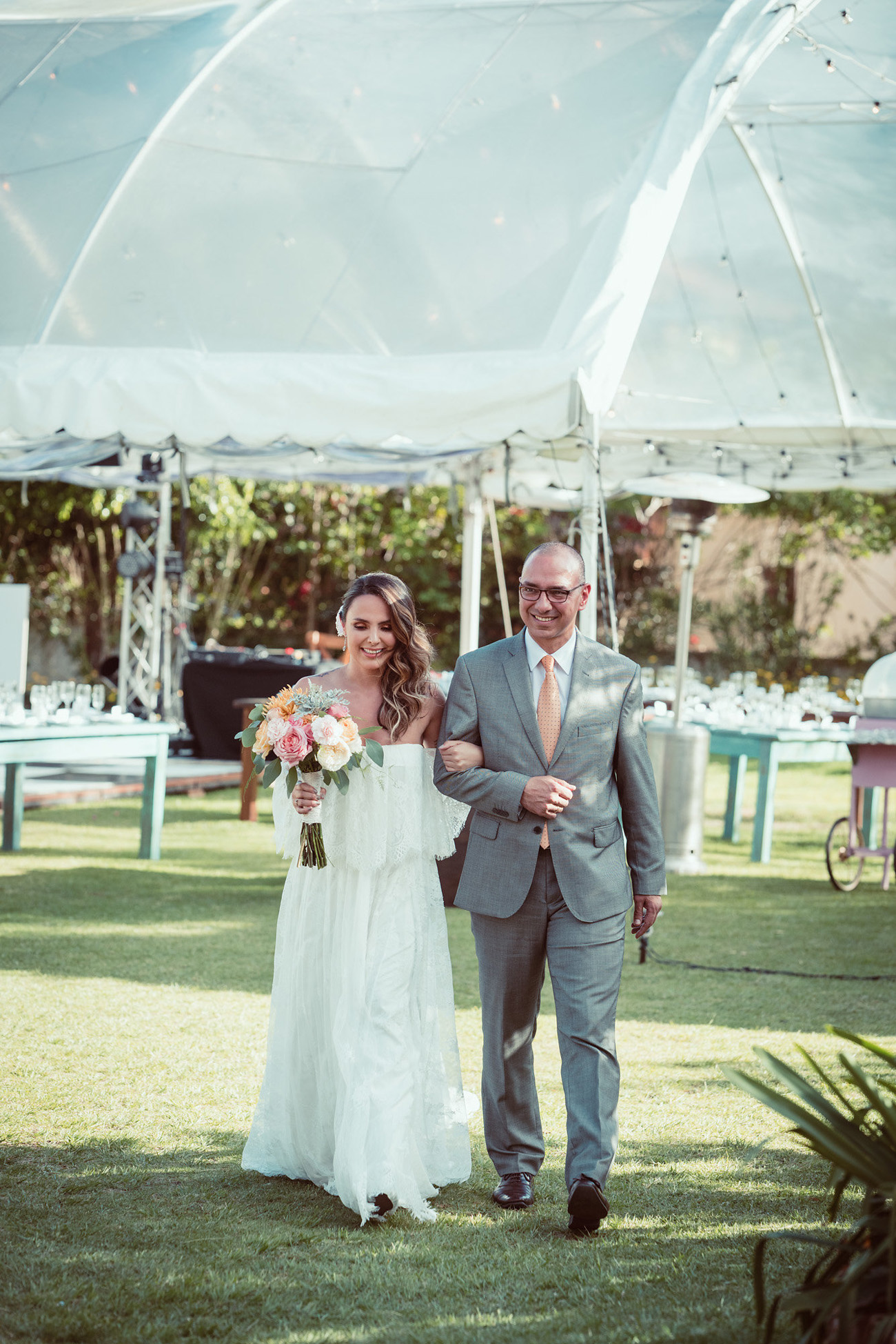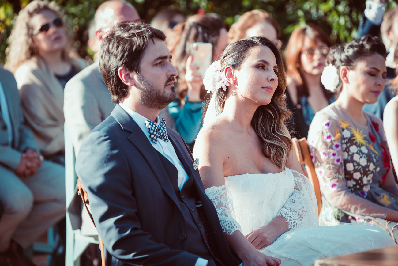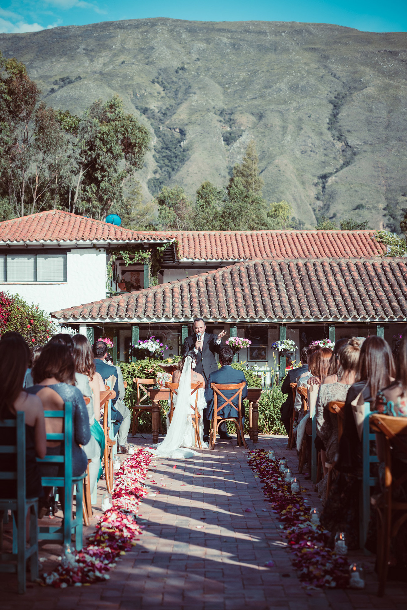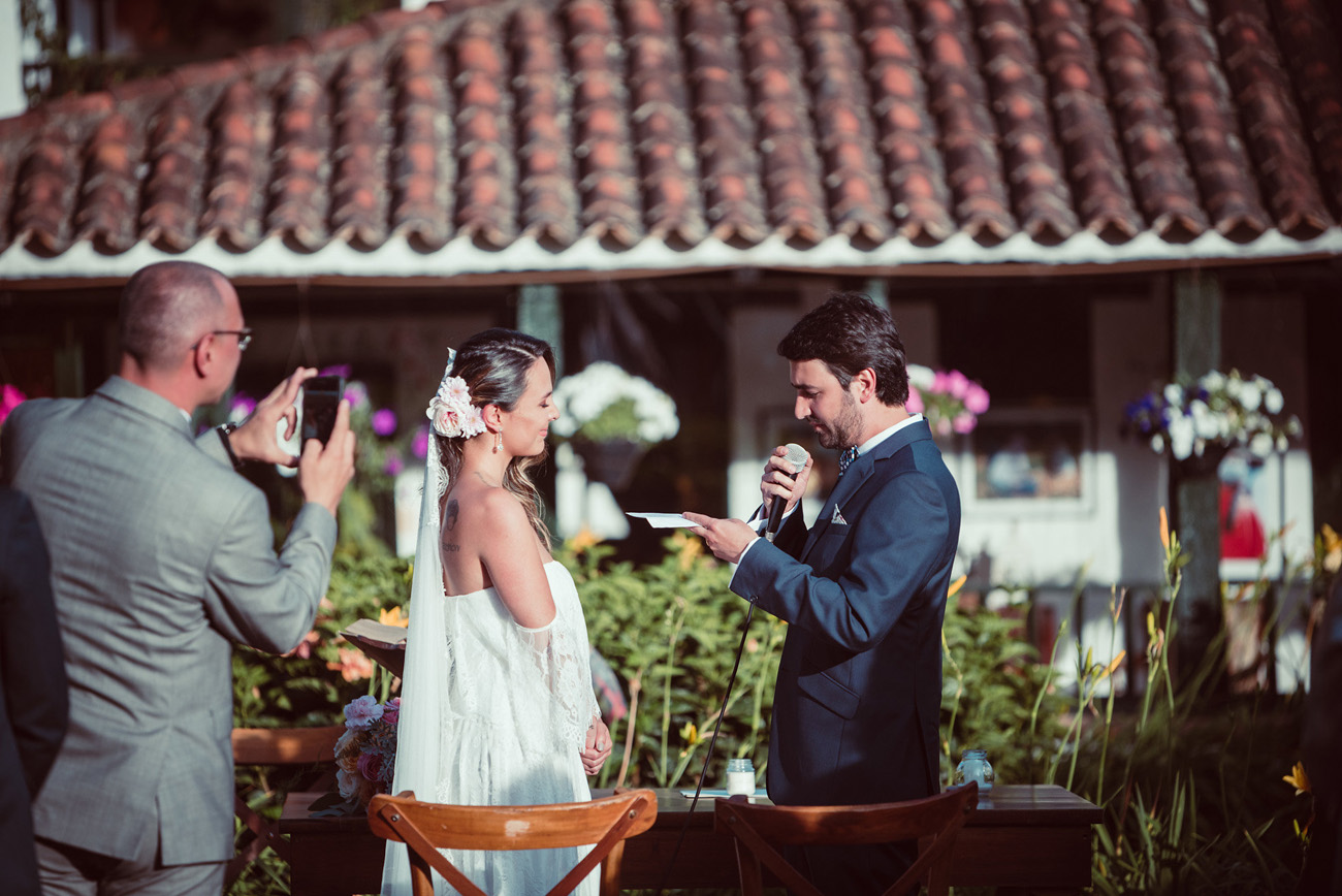 “Tuvimos claro que no queríamos que fuera una ceremonia católica. Alejandro es ateo y yo siempre había querido que uno mis hermanos, que es ministro en una iglesia de Estados Unidos, nos casara. Fue un momento divino porque además de la magia del lugar, que fue espectacular, se veía la montaña prefecta y nos hizo una tarde muy bonita. A mí me entró mi hermano mayor, que es como mi papá, entonces que tus hermanos hombres hayan estado involucrados lo hizo mágico. Tuvimos también las arras de mi abuela, ella las usó en su matrimonio hace 70 años. Fue lindo tenerla ahí de alguna manera”.