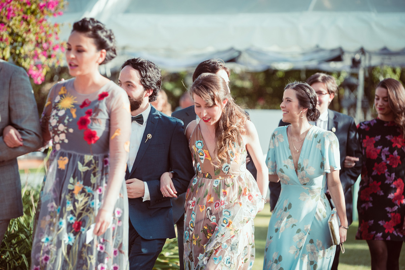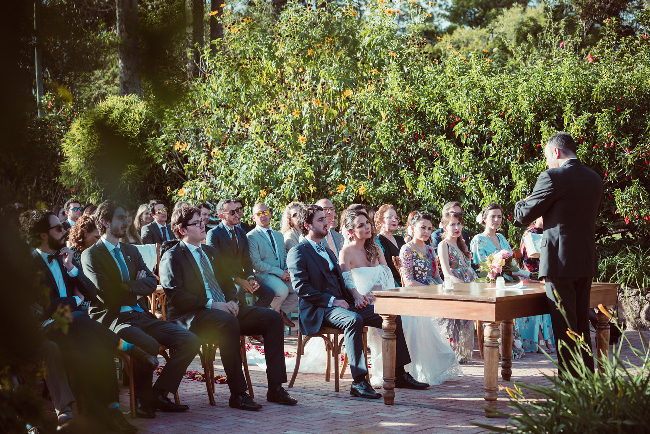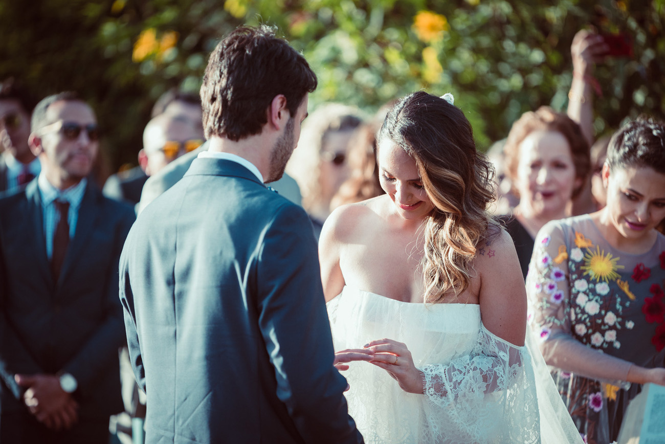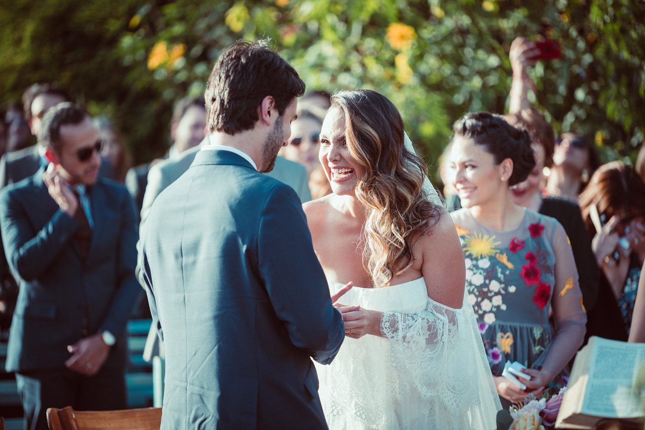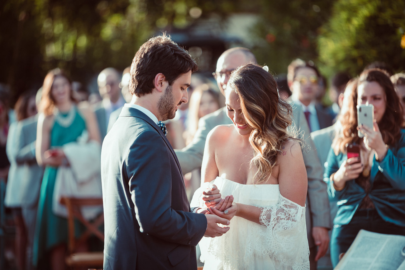 “Tuvimos claro que no queríamos que fuera una ceremonia católica. Alejandro es ateo y yo siempre había querido que uno mis hermanos, que es ministro en una iglesia de Estados Unidos, nos casara. Fue un momento divino porque además de la magia del lugar, que fue espectacular, se veía la montaña prefecta y nos hizo una tarde muy bonita. A mí me entró mi hermano mayor, que es como mi papá, entonces que tus hermanos hombres hayan estado involucrados lo hizo mágico. Tuvimos también las arras de mi abuela, ella las usó en su matrimonio hace 70 años. Fue lindo tenerla ahí de alguna manera”.