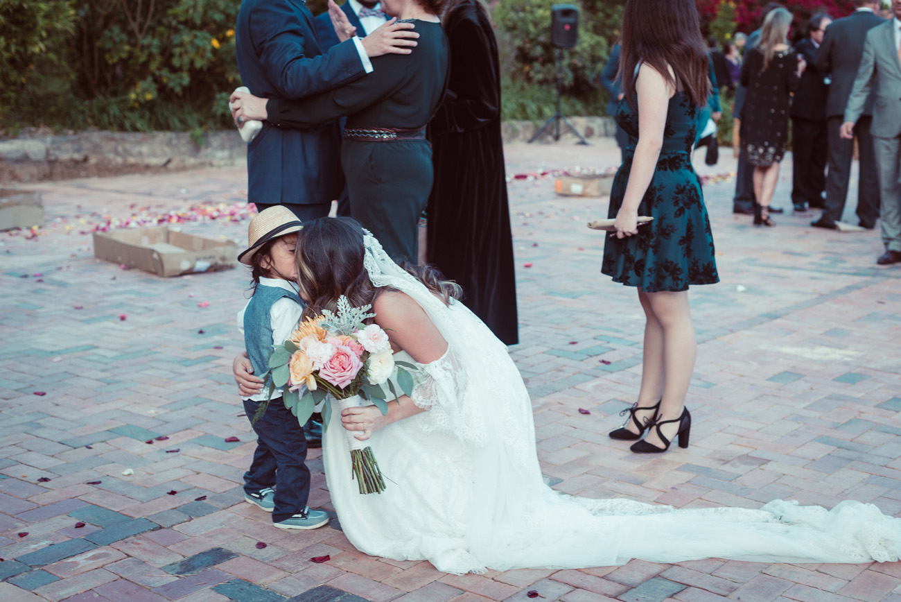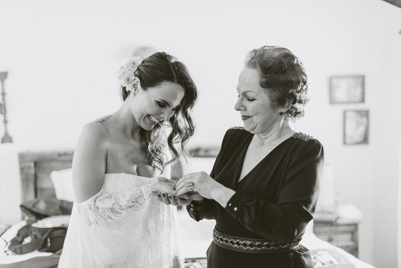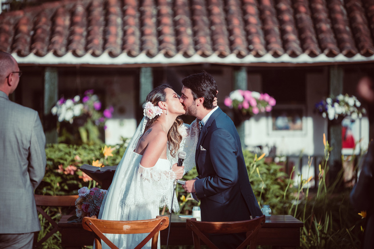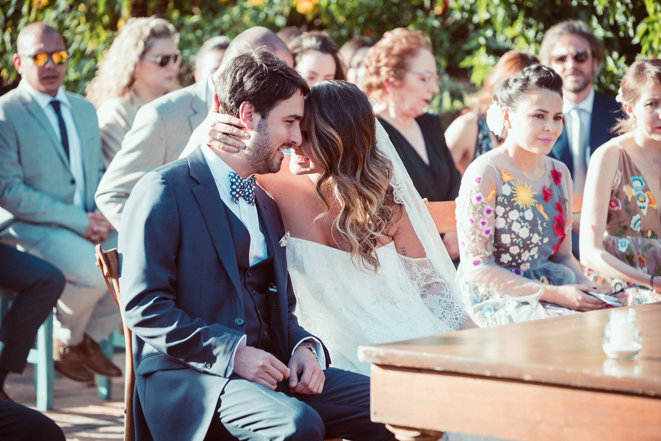 “Tuvimos claro que no queríamos que fuera una ceremonia católica. Alejandro es ateo y yo siempre había querido que uno mis hermanos, que es ministro en una iglesia de Estados Unidos, nos casara. Fue un momento divino porque además de la magia del lugar, que fue espectacular, se veía la montaña prefecta y nos hizo una tarde muy bonita. A mí me entró mi hermano mayor, que es como mi papá, entonces que tus hermanos hombres hayan estado involucrados lo hizo mágico. Tuvimos también las arras de mi abuela, ella las usó en su matrimonio hace 70 años. Fue lindo tenerla ahí de alguna manera”.