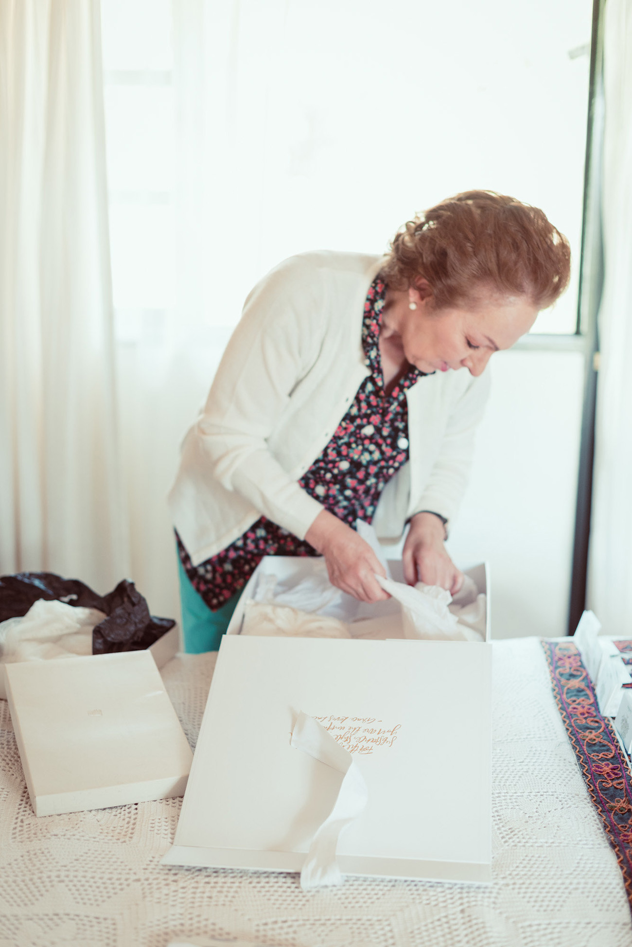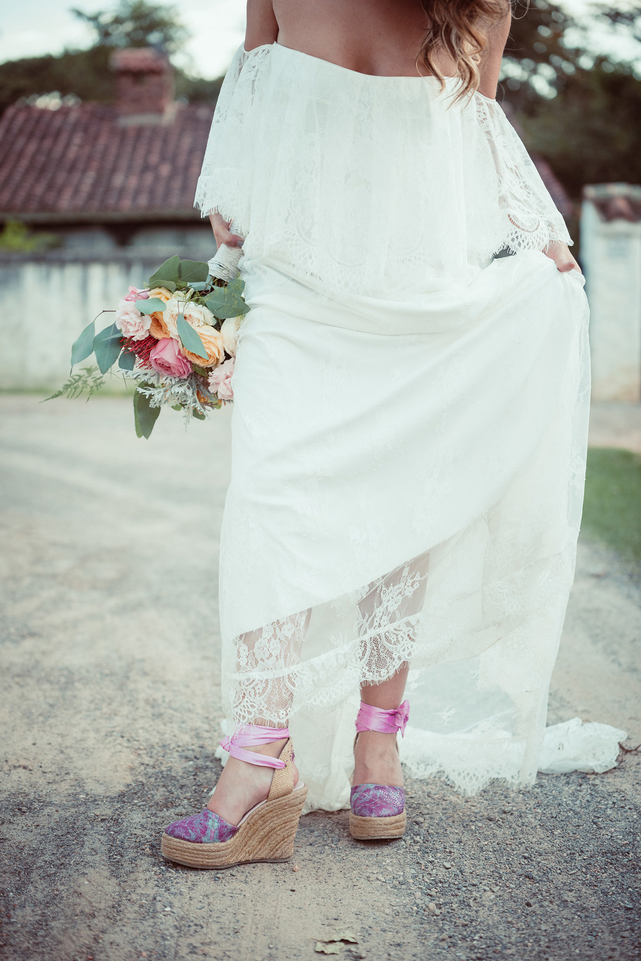 “Carolina, mi hermana, ya me había dicho que su regalo sería el vestido. Era cuestión de encontrarlo. Una de mis madrinas me recomendó seguir en Instagram a Grace Loves Lace y me enamoré de la marca. Sus vestidos eran tal cual lo que yo quería: cómodos, pero sin perder la elegancia, como hippie chic. Cuando publicaron el que compré dije, “quiero ese”. La libreta morada (que estaba de viaje en Australia) me ayudó diciéndome si la calidad de la tela era buena, quería confirmar que no me fuera a llegar una cosa horrible. El servicio con ellos fue espectacular, están muy pendientes de todo lo que uno necesita. Carolina fue la que realmente se lo midió jajajajaja. Ella estaba en Los Ángeles y allá hay una boutique, entonces fue, se lo puso, también vio la calidad de la tela, me reafirmó que sí era divino y con eso tomé la decisión. No me arrepiento, el vestido me quedó perfecto, no tuve que mandarlo a arreglar. Era para mí. La forma, el encaje, la caída, no sabes la comodidad. Era todo lo que yo esperaba y soñaba”.
