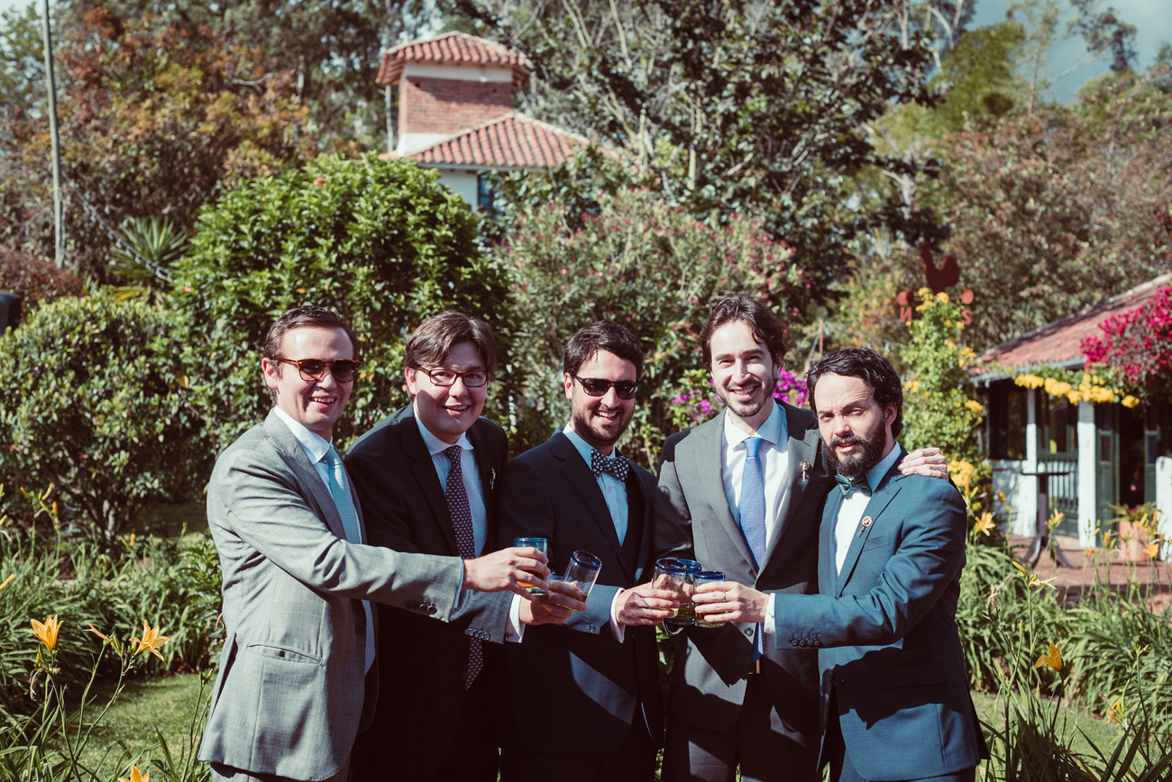 “Queríamos que fuera sencillo, cozy. Los que nos conocen saben que somos súper frescos, relajados y no nos complicamos mucho. Todo eso se vio reflejado. Yo quería muchas luces y tenía claro que no quería flores, por eso busqué velas, frascos y piedras para decorar las mesas. La carpa tuvo luces en el techo y al final el sitio nos ayudó muchísimo, porque era un gran jardín, entonces no había necesidad de poner mucho más. Fue una decoración sencilla pero ecléctica, sin una paleta especifica de colores. La vajilla de El Carmen de Viboral jugó un papel importante y era el centro de atención de la mesa. Como no hubo flores, jugamos con algunas cosas para que estuvieran presentes, como que los vestidos de las madrinas fueran con estampados florales”.
