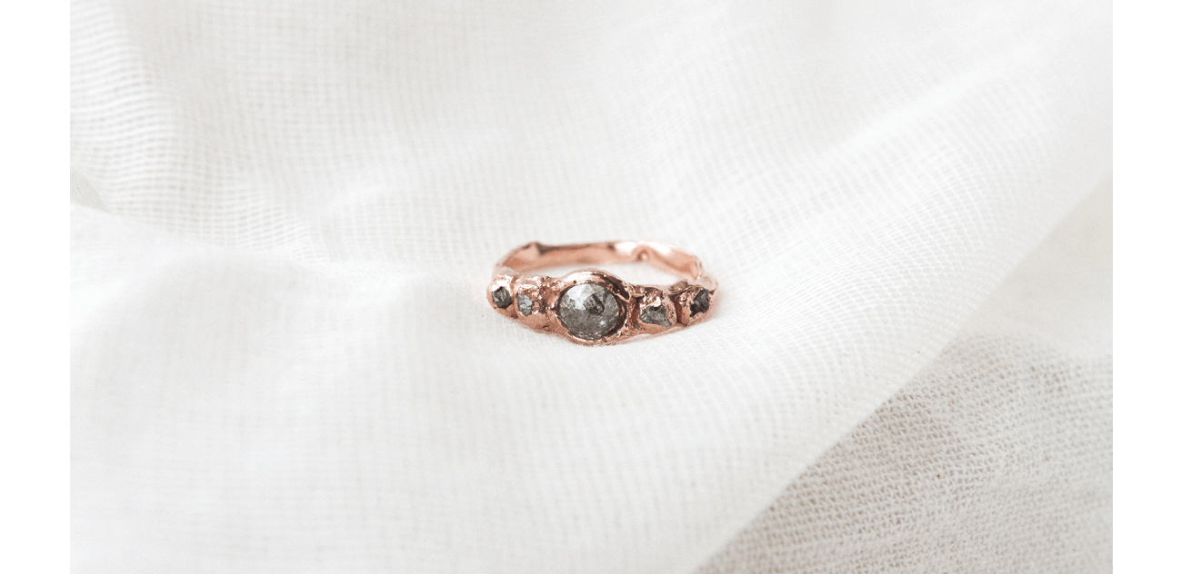 La naturaleza tiene muchas capas: las hojas cubren las ramas, las cáscaras cubren las frutas, la tierra cubre las raíces… Es un sistema infinito de protección, de confianza en ella misma, de belleza. Una belleza imperfecta, que, al final, termina siendo la verdadera. A partir de esa estética: rugosa, opaca o brillante, amorfa, tallada; llega la inspiración a Catalina. A partir de ese concepto orgánico que produce la misma naturaleza, Catalina crea joyas atípicas.