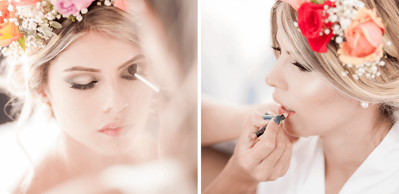 Ojalá con anticipación, mínimo tres meses, para garantizar disponibilidad. La prueba recomiendo que se haga un mes antes del matrimonio cuando ya está todo listo (zapatos, yugo, vestido). Eso me da muchas pistas para maquillaje y peinado.