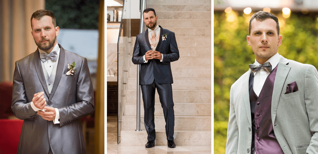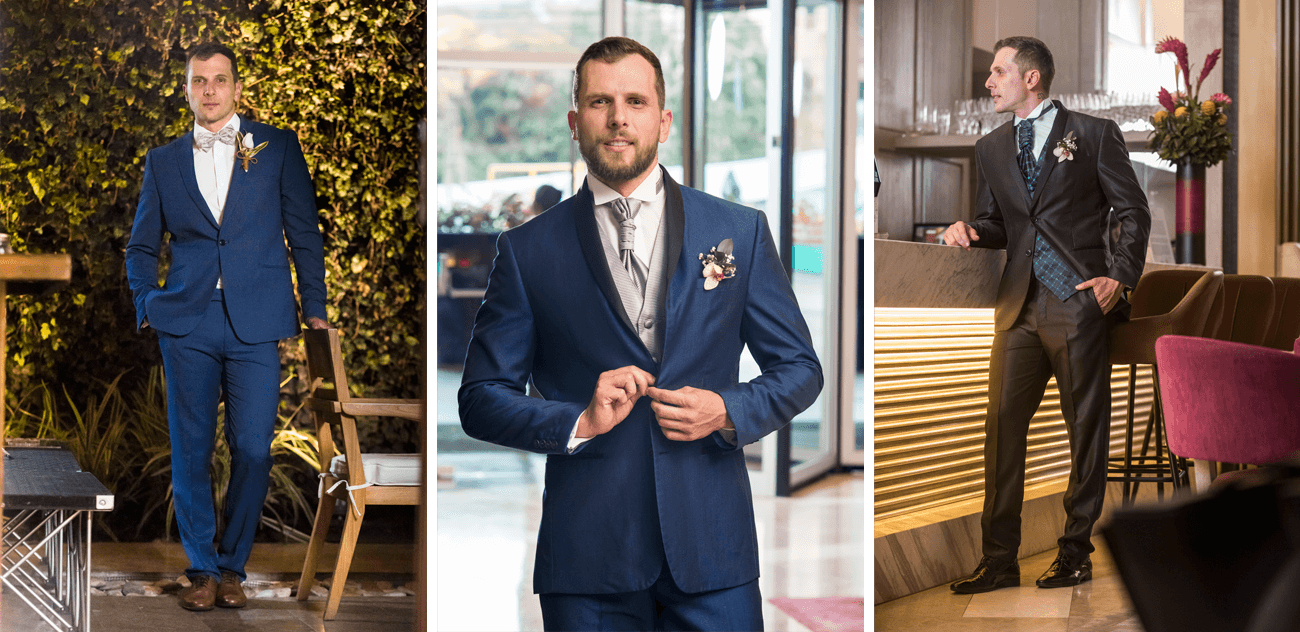 Tienda de trajes de lujo para novios: esmoquin, trajes de corbata; y vestidos de fiesta para toda la familia: anfitrionas, invitadas y abuelitas.