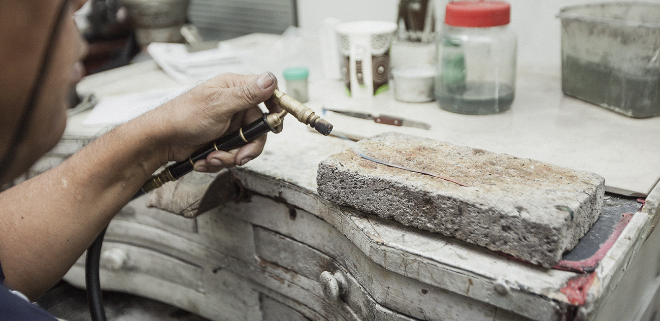 Conversa con ellos, les pregunta por “ella”, por sus gustos, su estilo. Quizás les pide una foto de la mano. Así se hace una idea de la talla, cuando ellos no la saben. Les cuenta la diferencia entre anillo de compromiso y argollas de matrimonio. Les muestra el taller, donde sucede la magia. En definitiva, lejos de venderles una joya única y personalizada, que nadie más en el mundo tendrá, por su elaboración a mano y el amor con el que es hecha, Mauricio los tranquiliza al momento de tomar esta decisión. La experiencia es igual de emocionante cuando las parejas los visitan para hacer sus argollas de matrimonio.