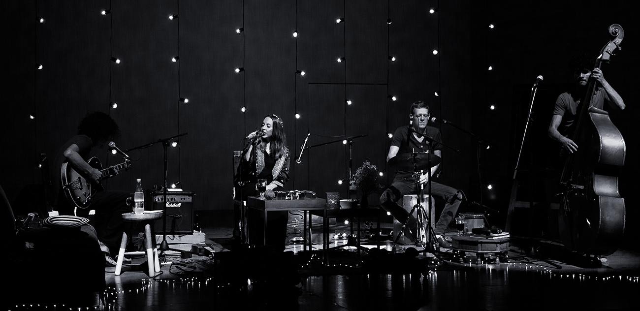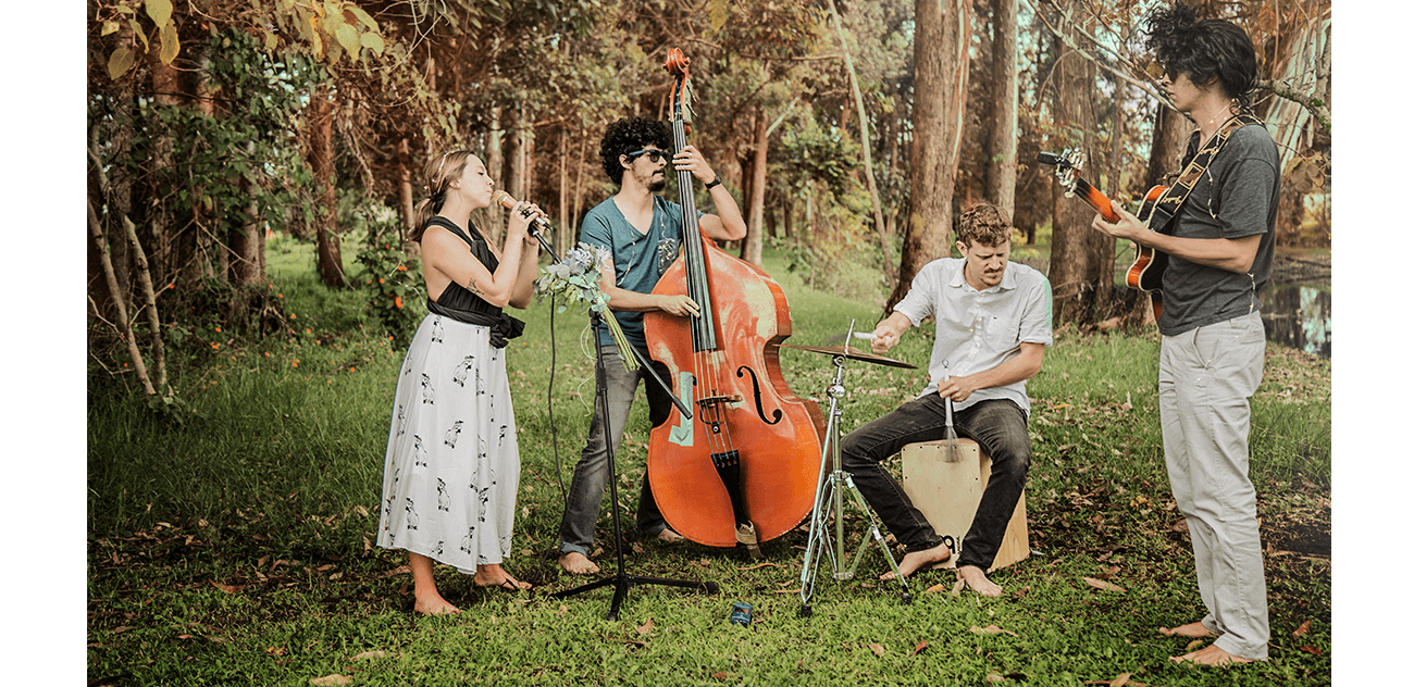Candelaria es la voz; serena como el mar en calma, potente cuando entra en marea. David es el contrabajo, la fuerza del equilibrio, de la armonía. Matías es la percusión, la chispa, la explosión continua. Víctor es la guitarra, reservado y misterioso, como un vaivén de cuerdas. En la vida y en la música, se parecen a sus instrumentos. Son melodía y luz.