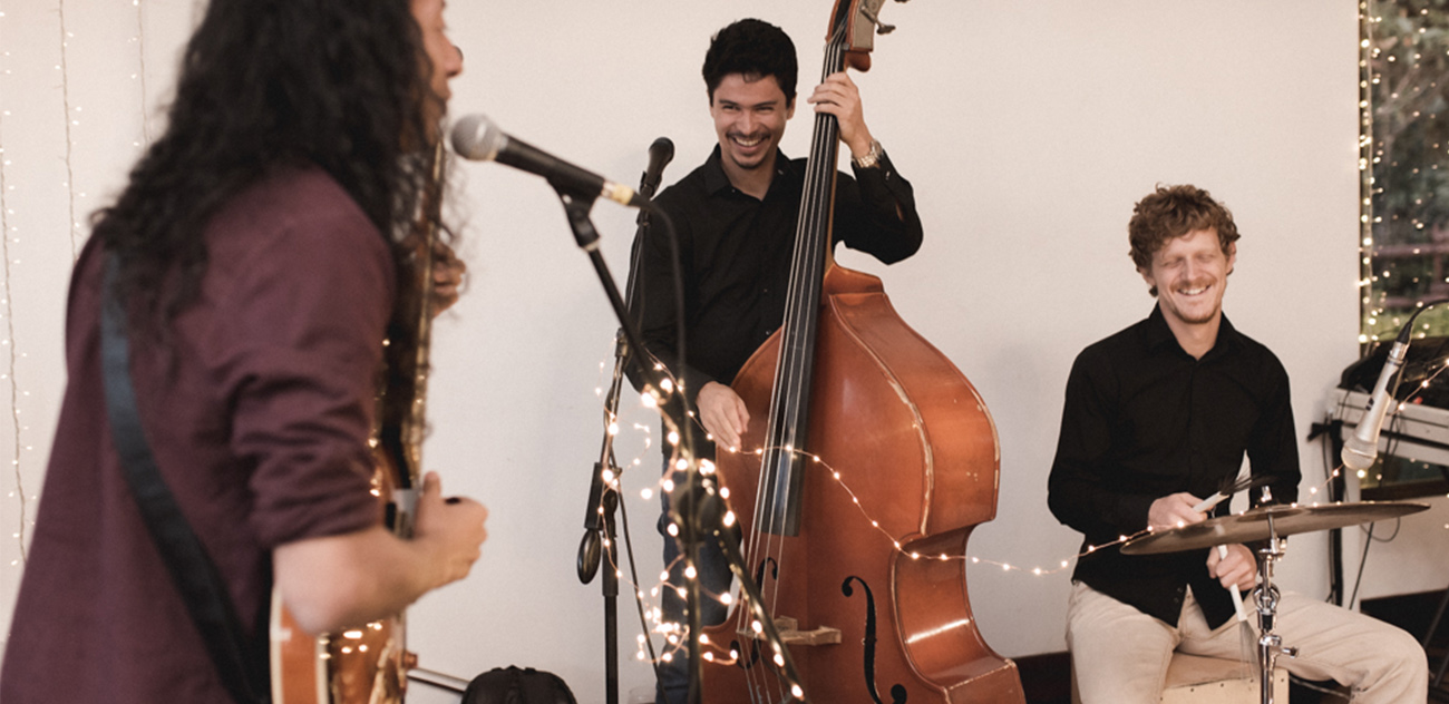 Desde entonces, nunca han dejado de ensamblar de manera natural. Son el hobby y el oficio. Los amigos y el hogar. La musa y el parche. Desde entonces, tocan, cantan, interpretan la música que les gusta: desde Edith Piaf hasta Kings of Convenience. Desde Bossa Nova hasta música francesa. Desde boleros hasta pop. Cuando les preguntan por su repertorio, responden “música que nos gusta”; cuando les preguntan si pueden tocar tal canción, responden que la van a escuchar y si resulta ser “música que les gusta”, entonces sí. Cuando les preguntan si pueden tocar en “la rumba”, responden que la música que les gusta, no va en esa onda. Por eso, solo están en ceremonias, en cocteles, en el momento antes de la fiesta. No se definen por géneros, no se limitan a estilos, no se cierran en modas. La música que les gusta es, en otras palabras, la música que los hace brillar.
