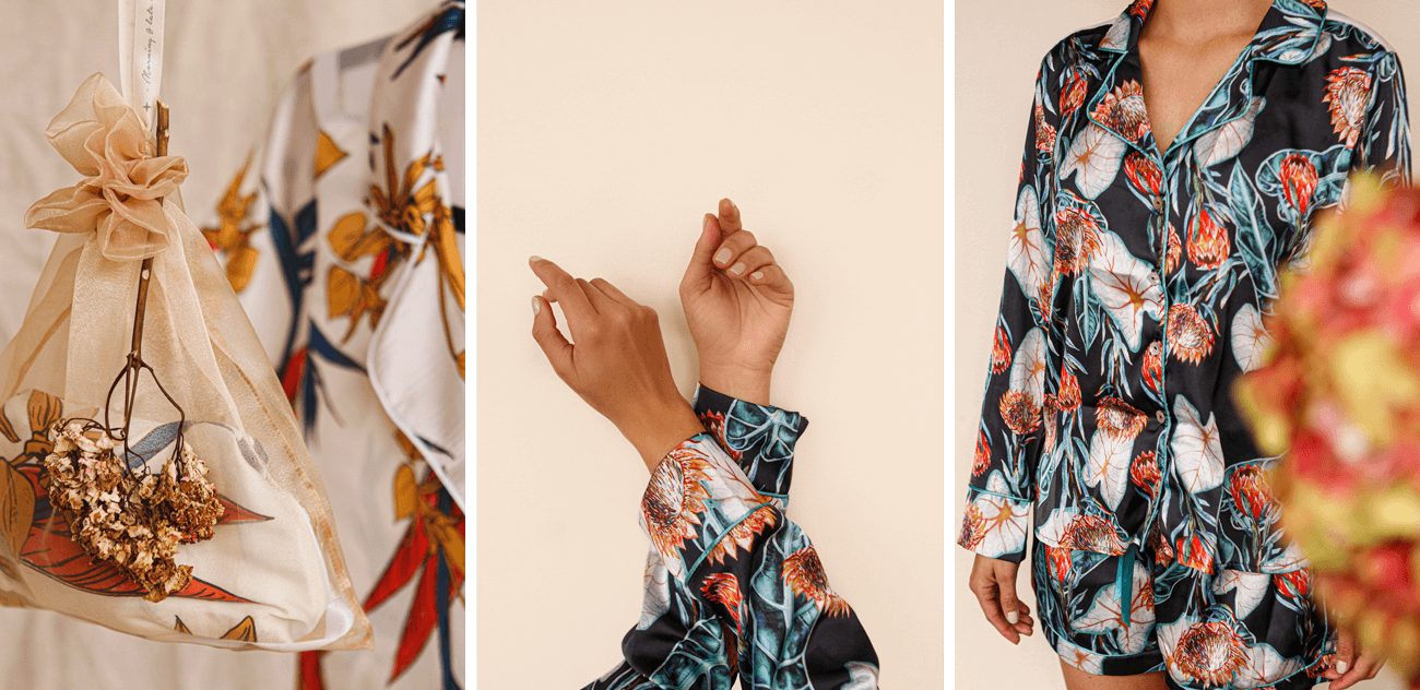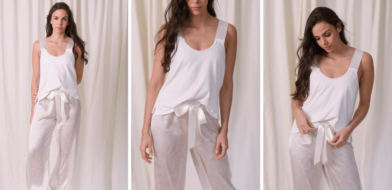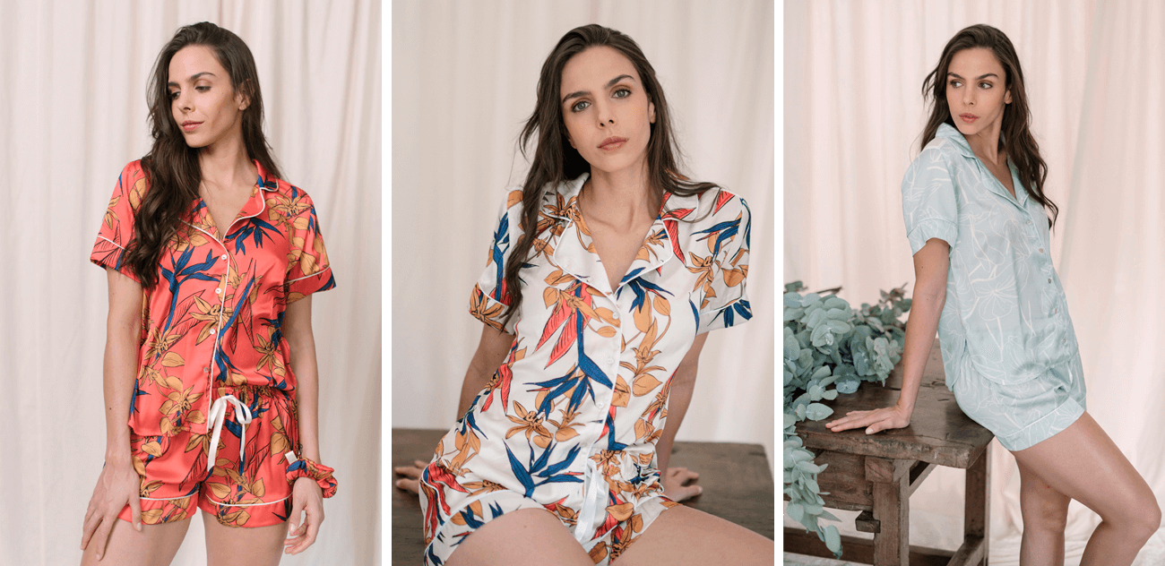 La idea fue de Camila, cuando después de un viaje en el que la nostalgia hizo de las suyas, quiso parecerse a su mamá y entonces buscó una pijama por las calles italianas. Una pijama que reflejara esa mística que tiene la noche, ese encanto, esa seducción.
