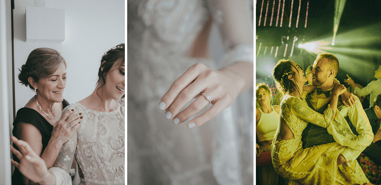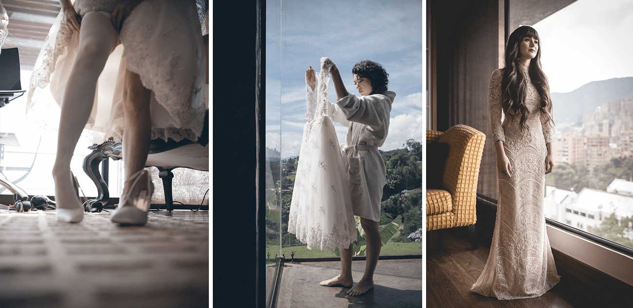 Por ejemplo, en su primer matrimonio como fotógrafo (en Santafé de Antioquia), todos los invitados terminaron en una piscina. Ya podrán imaginarse el resultado: retratos desenvueltos, naturales, francos, “alternativos”, momentos genuinos. Lo único por lo que se preocupa Carlos es porque la luz esté perfecta. De resto… No dirige fotos. No le dice al novio que la mire “como el primer día que la conoció”. No le dice a ella que sonría “porque es tu día más feliz”.