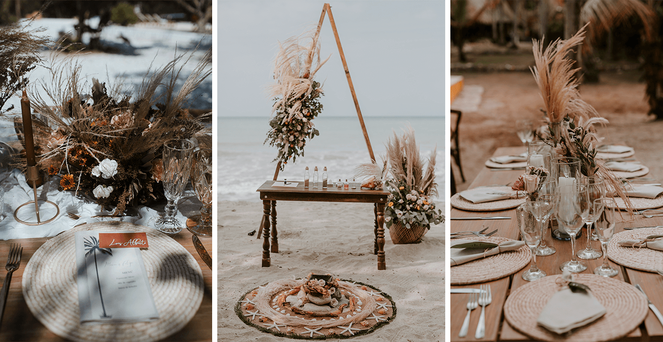 Un equipo vibrando en una misma aura. ¿Cuál? La que ellas mismas crearon: fresca, sencilla, ausente de recargos. Equilibrada, armónica, íntima. Tienen maestría absoluta en playas, en decoraciones eclécticas con follajes, ramas secas y raíces, frutos; en carritos con raspados y cocteles frutales; en iluminación cálida y esteras con cojines, en enredaderas y brindis frente al mar.