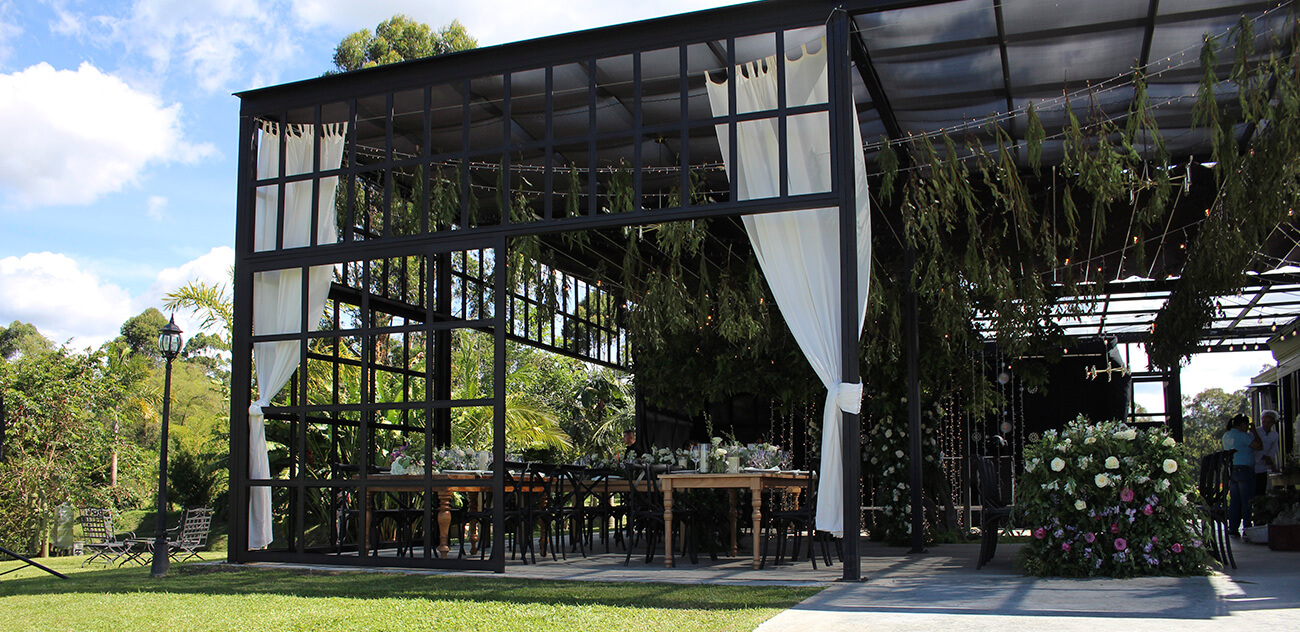 Ambos lugares están dotados con 14 baños para invitados, baños y vestidores independientes para uso de empleados y meseros, y una cocina semiindustrial. Se suman su capacidad de energía para orquesta y miniteca, planta eléctrica para emergencias, vigilancia especializada, parqueaderos ilimitados y el acompañamiento logístico en todo momento del matrimonio o el evento. Green House, la más reciente locación de Zona E, tiene como eje un viejo y restaurado contenedor, una evocación a un vagón de tren. Lleno de luces y naturaleza, este ambiente está concebido para matrimonios o eventos más íntimos, de máximo 80 personas, y cuenta con las comodidades que ofrecen sus dos espacios vecinos.
