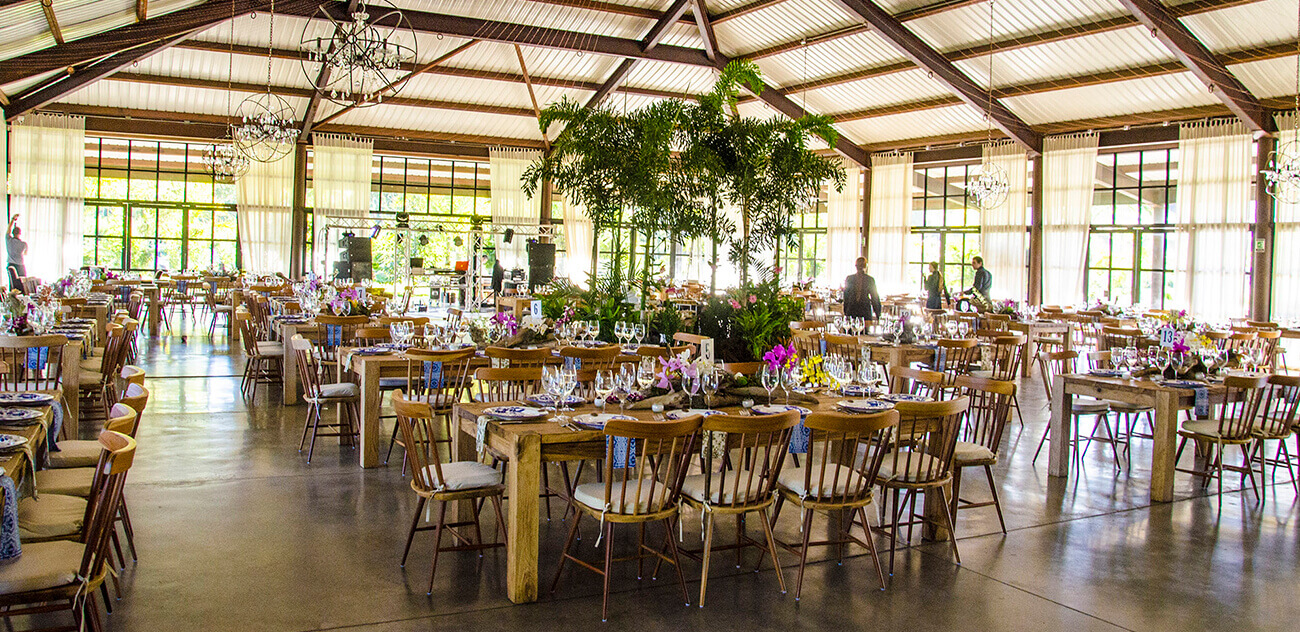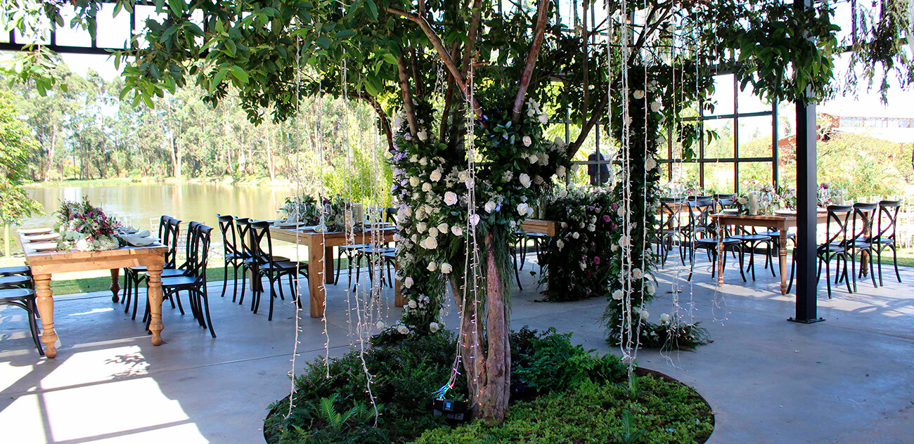 El espíritu rústico y cálido de El Establo, la primera locación, tiene su origen en Pinterest. Esta red sirvió de inspiración para diseñar un lugar estilo granero, pensado para darle un vuelco total al concepto de las bodas. Y así lo hizo. Un lago y un bosque de eucaliptos se convierten en el mejor escenario para realizar una ceremonia al aire libre.