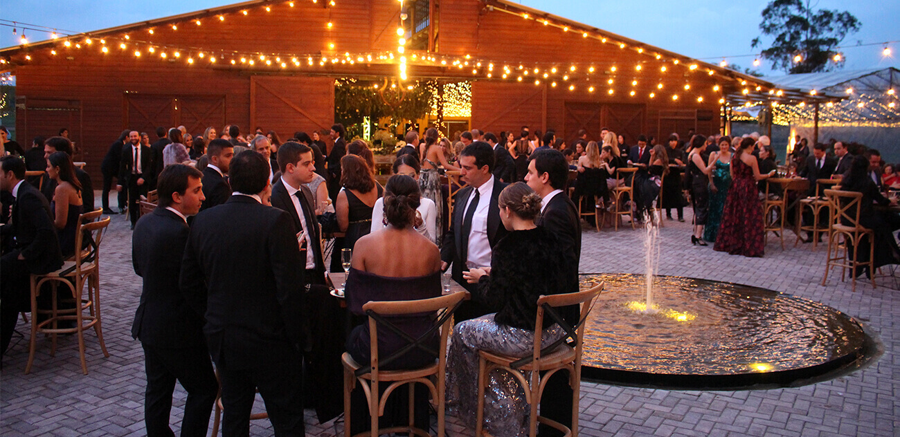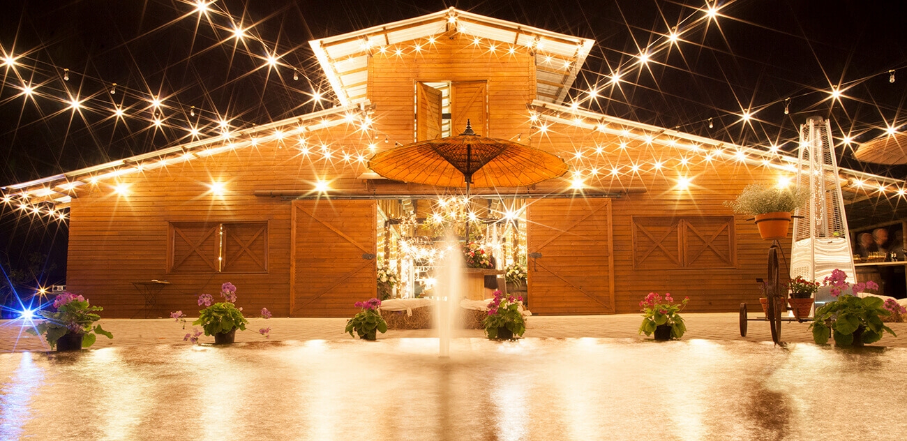 La plazoleta, con su fuente de agua, es el lugar para hacer el brindis al ritmo de una música suave. Y al frente, imponente, construido en madera, el establo. Con capacidad para 300 personas, e iluminado con más de 50 mil luces, acoge la comida y la rumba.