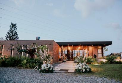 Pinos altos, montañas y atardeceres rojizos, morados o azules son el paisaje para que la ceremonia y la fiesta se vivan con la misma belleza. En el día, las ventanas reflejan la historia. En la noche, el brillo de la ciudad envuelve a los bohemios y las luces del deck y los bombillos de adentro encienden el escenario. Cocina industrial —por supuesto— con todo lo necesario para que el catering se luzca.