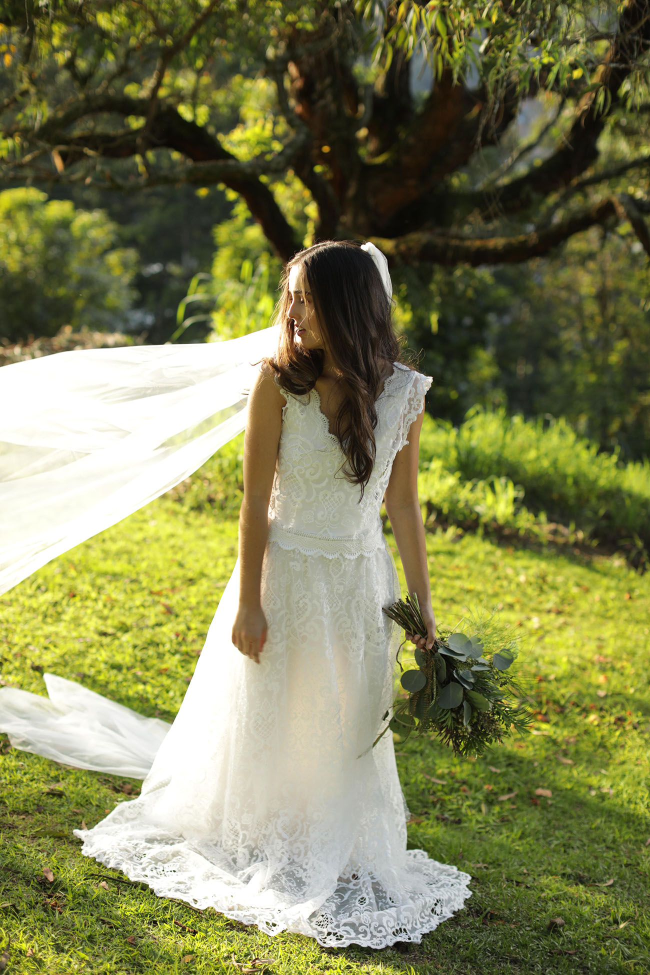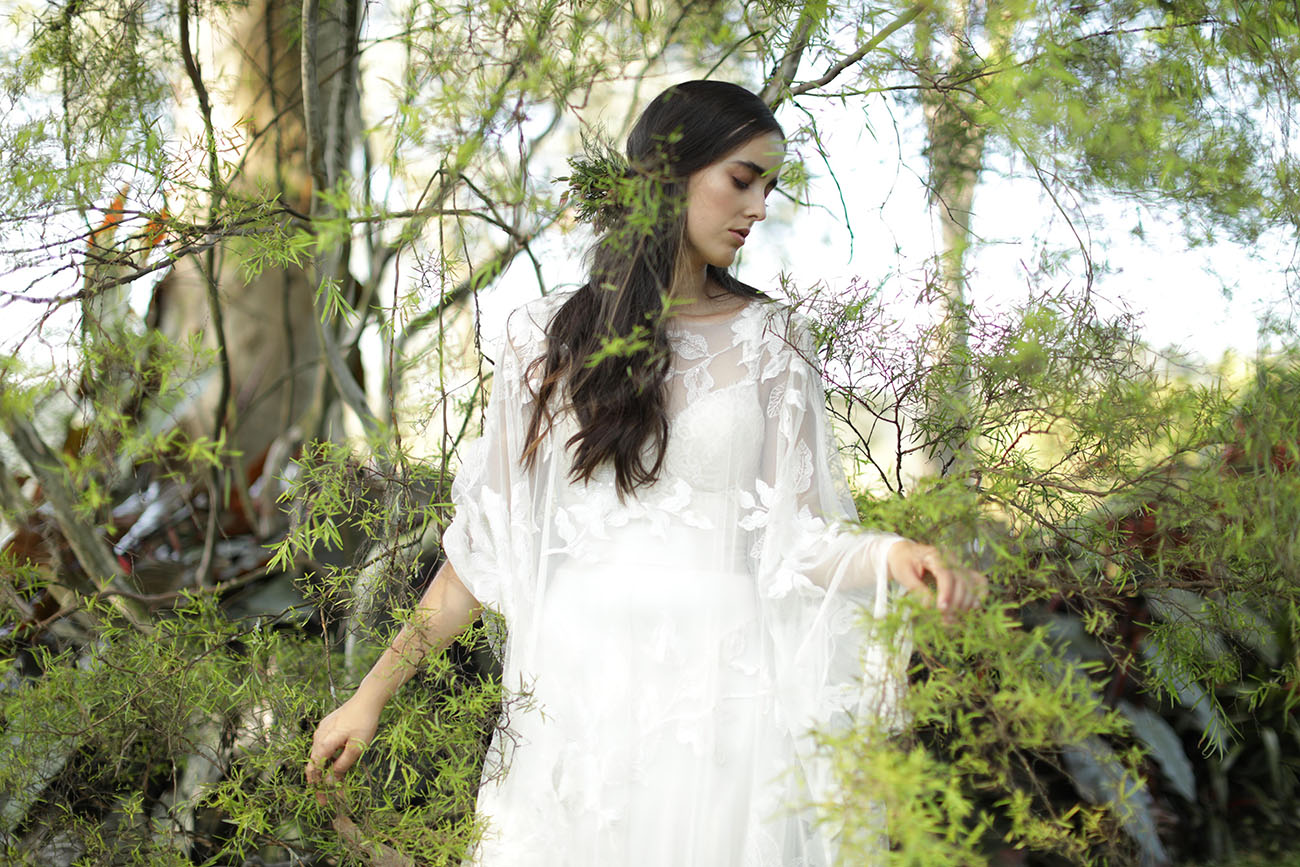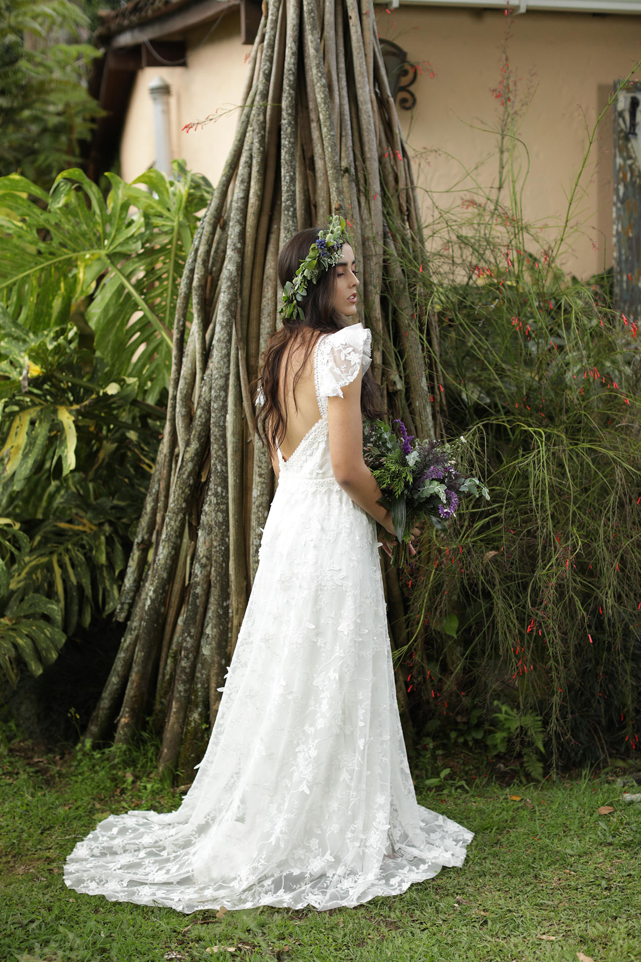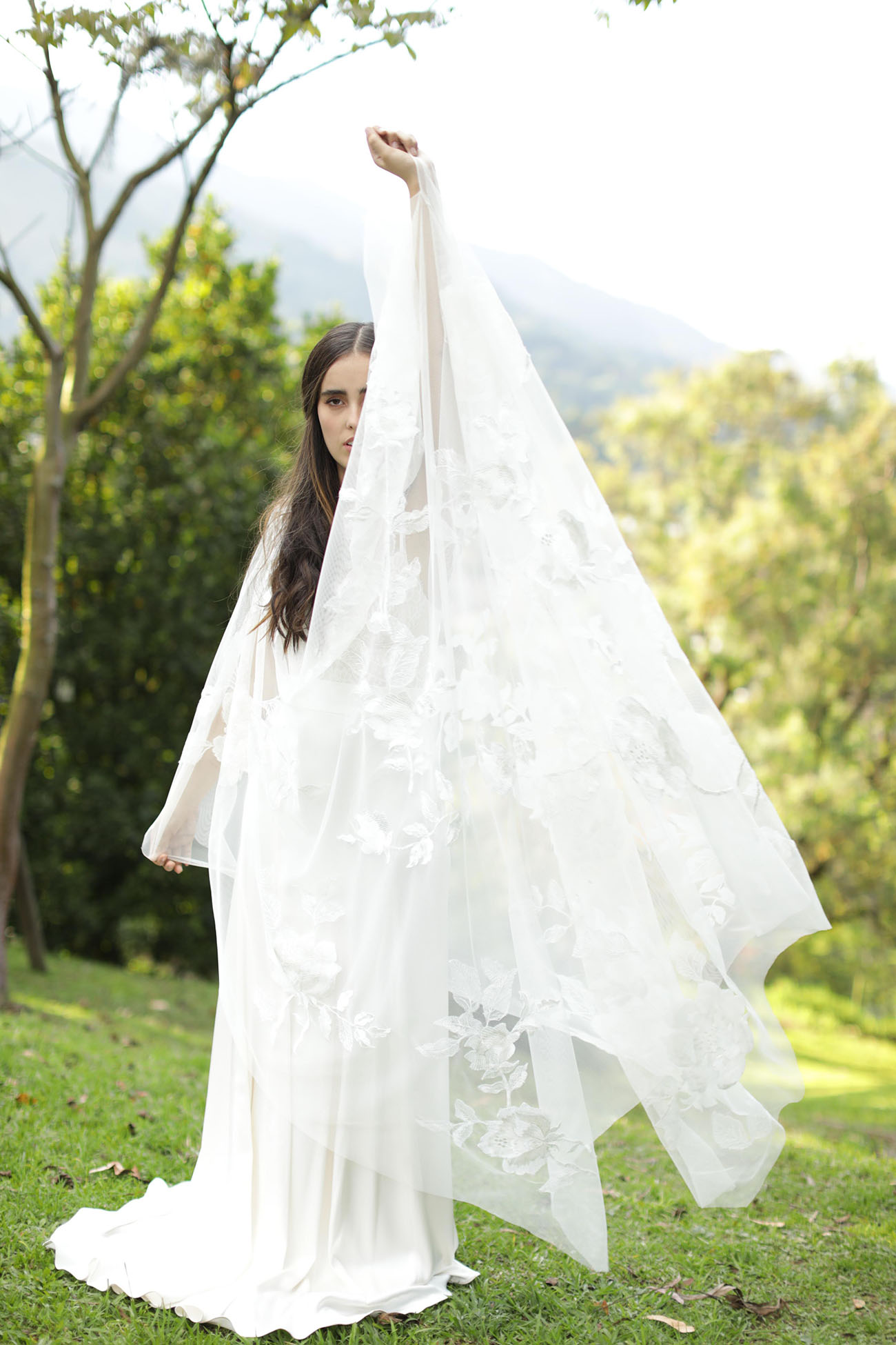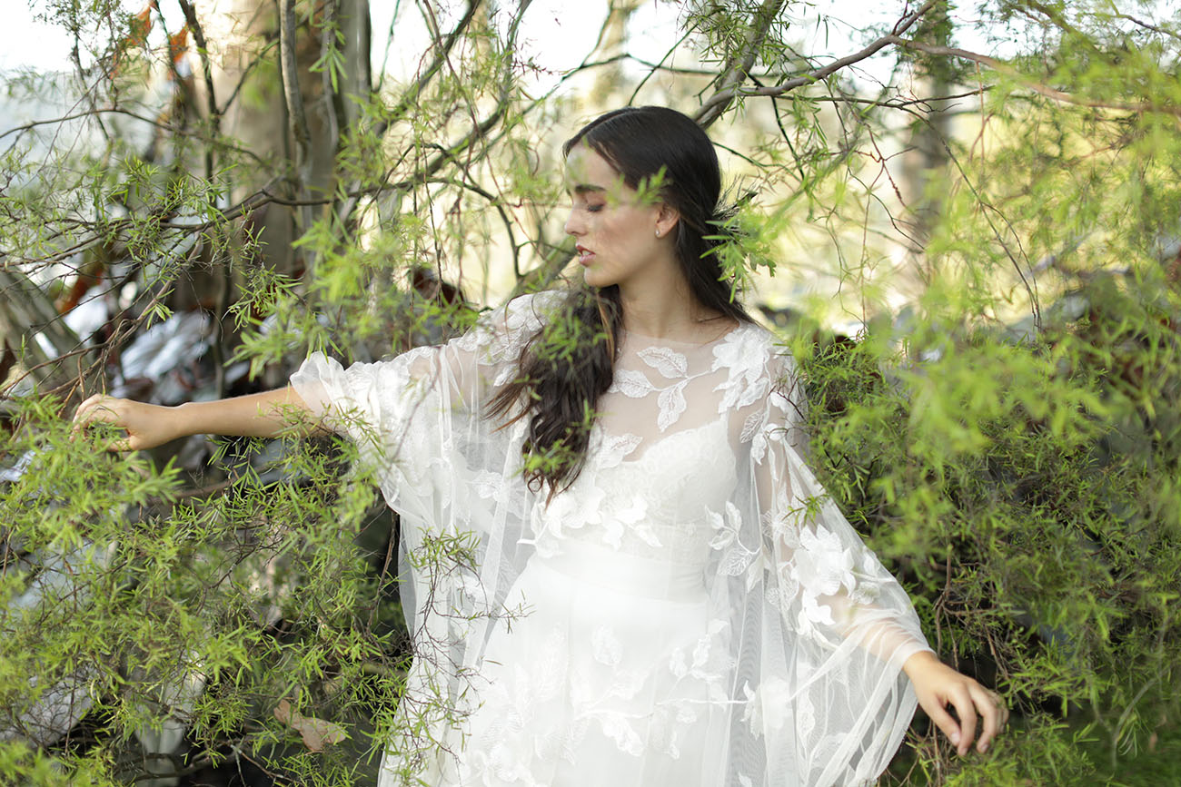 “Piezas para novias más relajadas, con cuerpos reales, que quieren algo no tan estructurado. La comodidad es una prioridad. Románticas, con una dosis de atrevimiento, sin ser vulgares. Novias que quieran gozarse la fiesta con un vestido que parezca una extensión de su cuerpo”, nos cuenta Lauri.