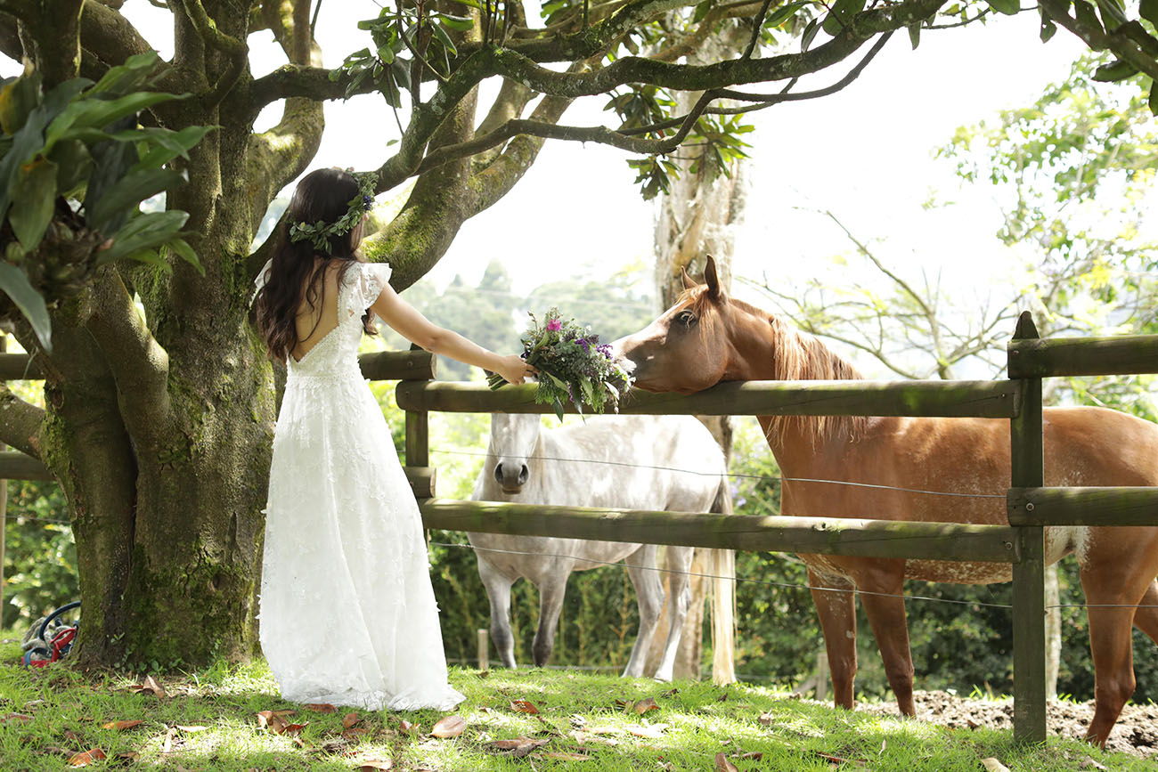 Vestidos nuevos, listos para llevar, pero hechos a la medida. Y solo para la venta. Lauri se unió con Paola Logreira, diseñadora con más de 8 años de experiencia creando piezas para novias, y ahora les ofrecen a sus clientas la posibilidad de crear-personalizar el vestido sobre su propio cuerpo. ¿Cómo funciona? Tienen una colección de 12 – 18 prendas con cortes, materiales y siluetas muy variadas para que las novias puedan medirse y soñar mientras reciben una asesoría personalizada. Las mangas de este vestido con la abertura de esta falda. Este escote de adelante con los boleros de esta espalda. La caída de esta tela con la textura de esta parte superior. Y si te gustó tal cual está, se hacen los ajustes de medidas, y el vestido es tuyo. Una búsqueda que incluye dibujos, risas, fotos de inspiración y complicidad.