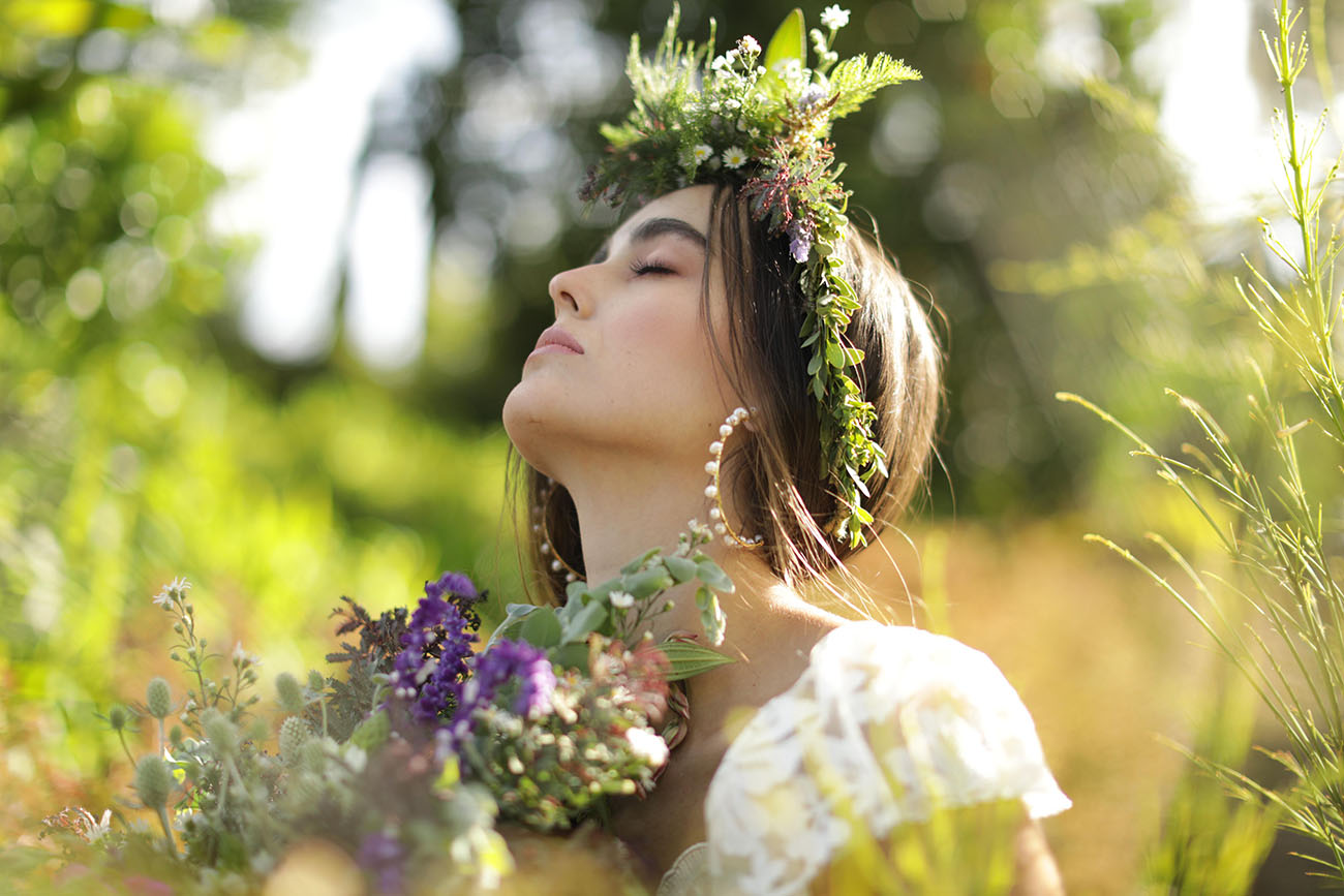Un ejercicio al aire libre. Una novia fresca y natural en una tarde soleada