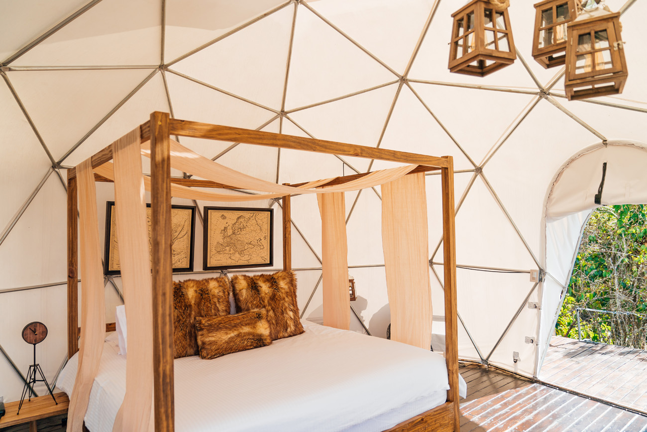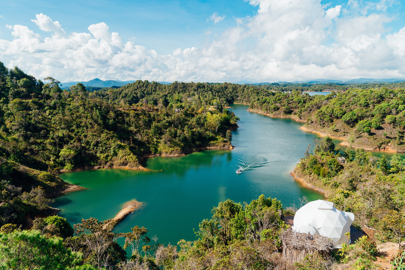 Volver a lo esencial es volver al bosque. A uno nativo, de 15 mil metros cuadrados, rodeado de un “mar entre las montañas”. Es ir –y querer volver, siempre- a Bosko. En Guatapé, a 82 kilómetros de Medellín, la promesa de este hotel a sus visitantes es muy simple: vivir el lujo de la naturaleza. Y qué mejor manera de hacerlo que habitar uno de sus seis Mush-Rooms, domos geodésicos que parecen surgir del frondoso paisaje.
