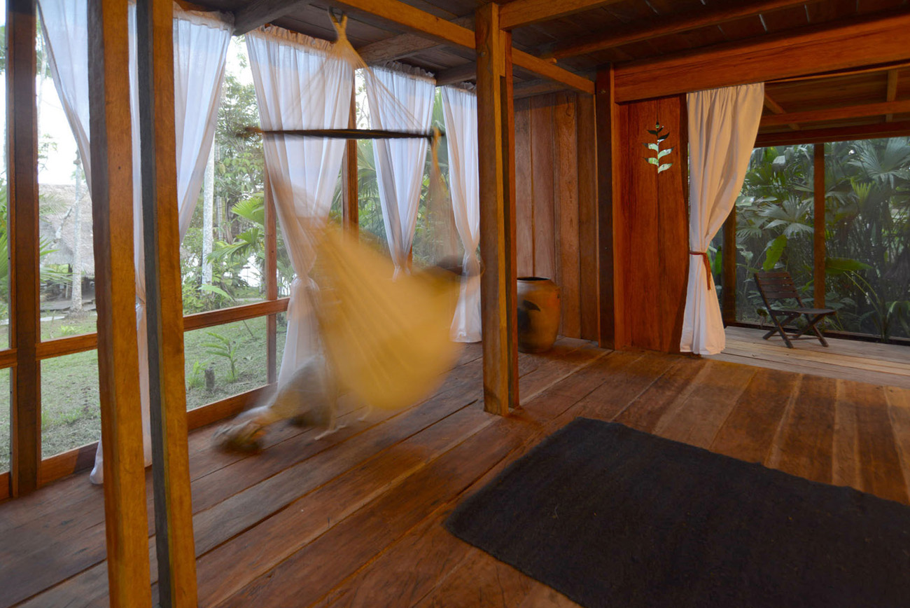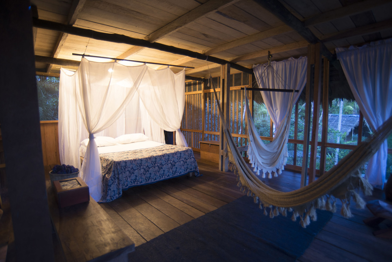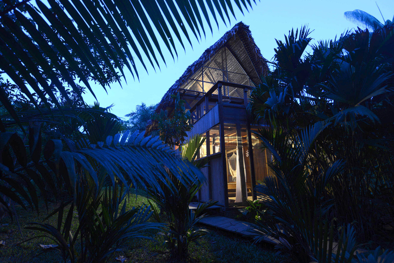Solo cinco cabañas componen este pequeño hotel de selva. Cómodas y llenas de detalles, su diseño fue pensado para brindar la sensación de dormir en la selva rodeado de árboles, pero protegido de los elementos externos. La suite junior, que tiene su inspiración en los barcos de vapor que bajaban por el río Amazonas, es una cabaña perfecta para dos personas (ideal para lunas de miel) con vistas hermosas del río. El hotel también ofrece la oportunidad de pasar la noche en un camping en el bosque y dormir en carpas colgantes.