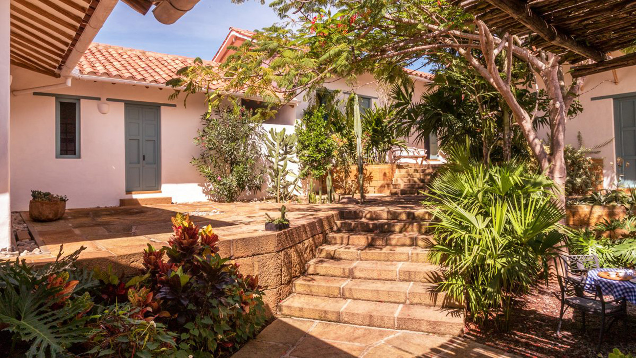 María Elvira y Jorge son los anfitriones de esta linda vivienda, ubicada en la parte alta del centro histórico de Barichara, Santander. Sus 1.400 metros cuadrados están pensados para el descanso y la inspiración. Descanso –total– en sus seis amplias y luminosas habitaciones. La suite tiene terraza propia con vista a la Catedral de Barichara, un chinchorro muy especial y una ducha al aire libre. Todas las razones para no querer salir de ella.