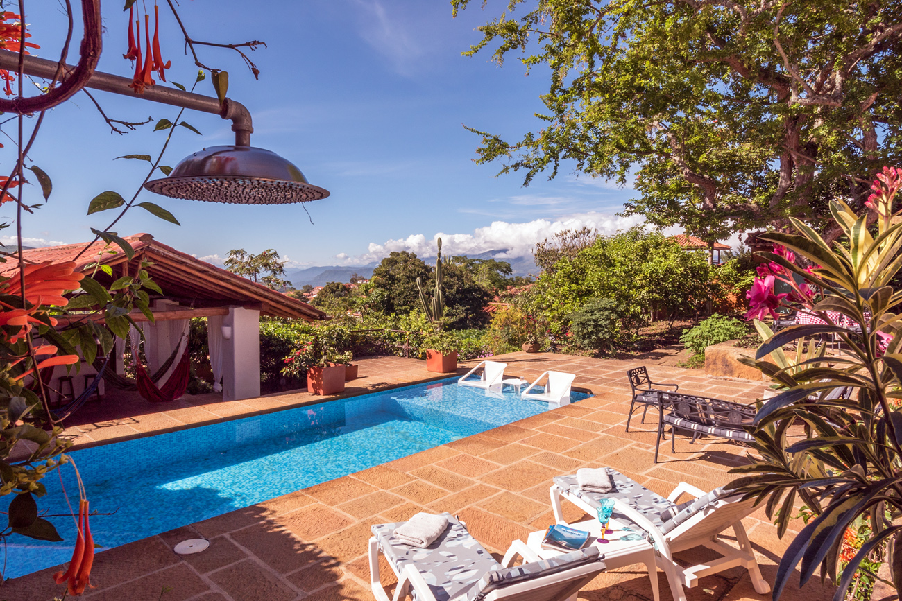 Casa rincón y detalle de esta casa son un derroche de inspiración y calidez: sus techos altos y vigas de madera expuestas; sus colores frescos y tranquilos, sus jardines ornamentales y comestibles que atraen aves y otras especies nativas; su piscina y sus terrazas; su sala de hamacas y su biblioteca, para relajarse y disfrutar de la lectura en un ambiente acogedor. Tomarse un café en Casa Barichara es un buen pretexto para iniciar la conversación con sus anfitriones. Ellos estarán encantados de conocer la historia de sus huéspedes y compartir la suya en este pueblo de tonalidades rojizas donde la vida va a otro ritmo.