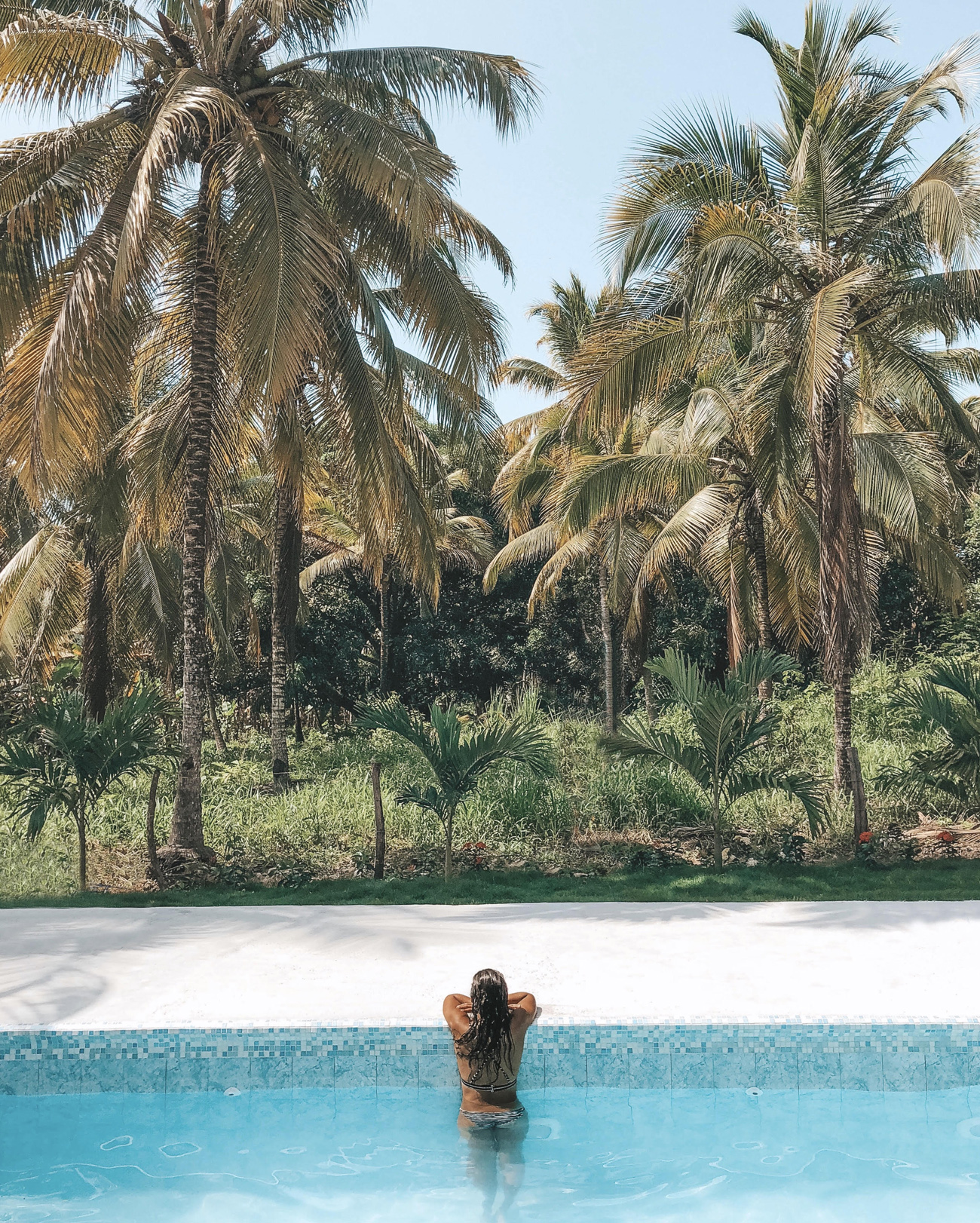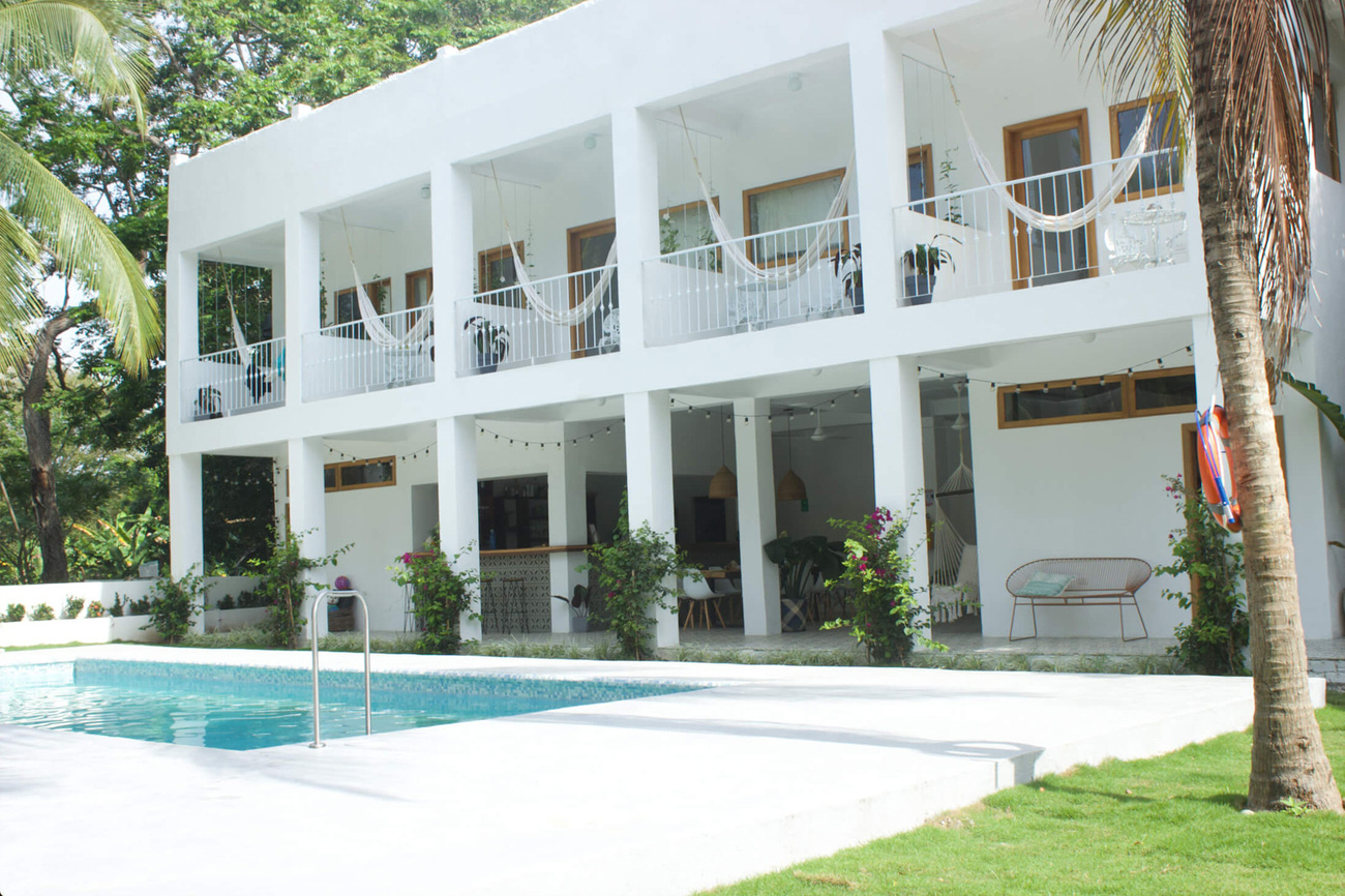 La propiedad, que abrió sus puertas en abril de este año, cuenta con seis habitaciones dobles con baño privado, aire acondicionado y vista al jardín y a la piscina; dos dormitorios compartidos con literas para seis personas y, además, dos cabañas en el árbol. En una zona tranquila, a solo 4 minutos a pie de la playa, la casa está rodeada de mangos y palmeras. Ah, por supuesto, hay un pavo y una pava real que se pasean libremente por las zonas verdes del hostal. La cocina abierta comparte espacio con una gran mesa de comedor donde se sirven las preparaciones de Alex, su chef. Tan deliciosas, que ya tienen a la Casa del Pavo Real en el top 10 de Tripadvisor. ¡Cómo no enamorarse de Palomino!